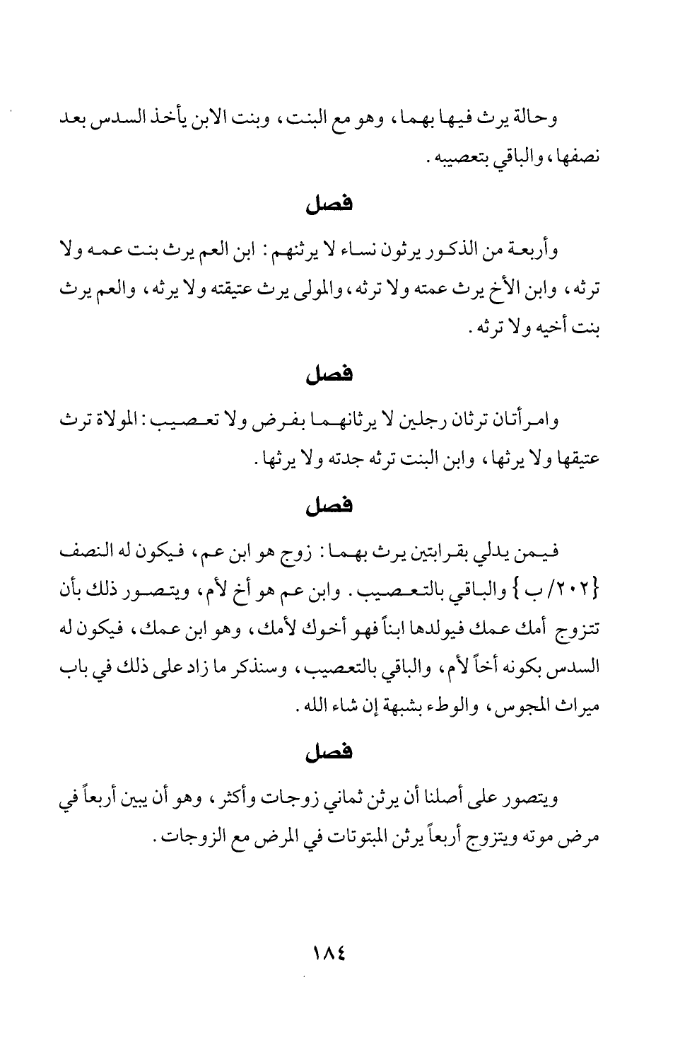 فيمن يدلي بقرابتين يرث بهما: زوج هو ابن عم، فيكون له النصف {202/ ب} والباقي بالتعصيب. وابن عم هو أخ لأم، ويتصور ذلك بأن تتزوج أمك عمك فيولدها ابناً فهو أخوك لأمك، وهو ابن عمك، فيكون له السدس بكونه أخاً لأم، والباقي بالتعصيب، وسنذكر ما زاد على ذلك في باب ميراث المجوس، والوطء بشبهة إن شاء الله.