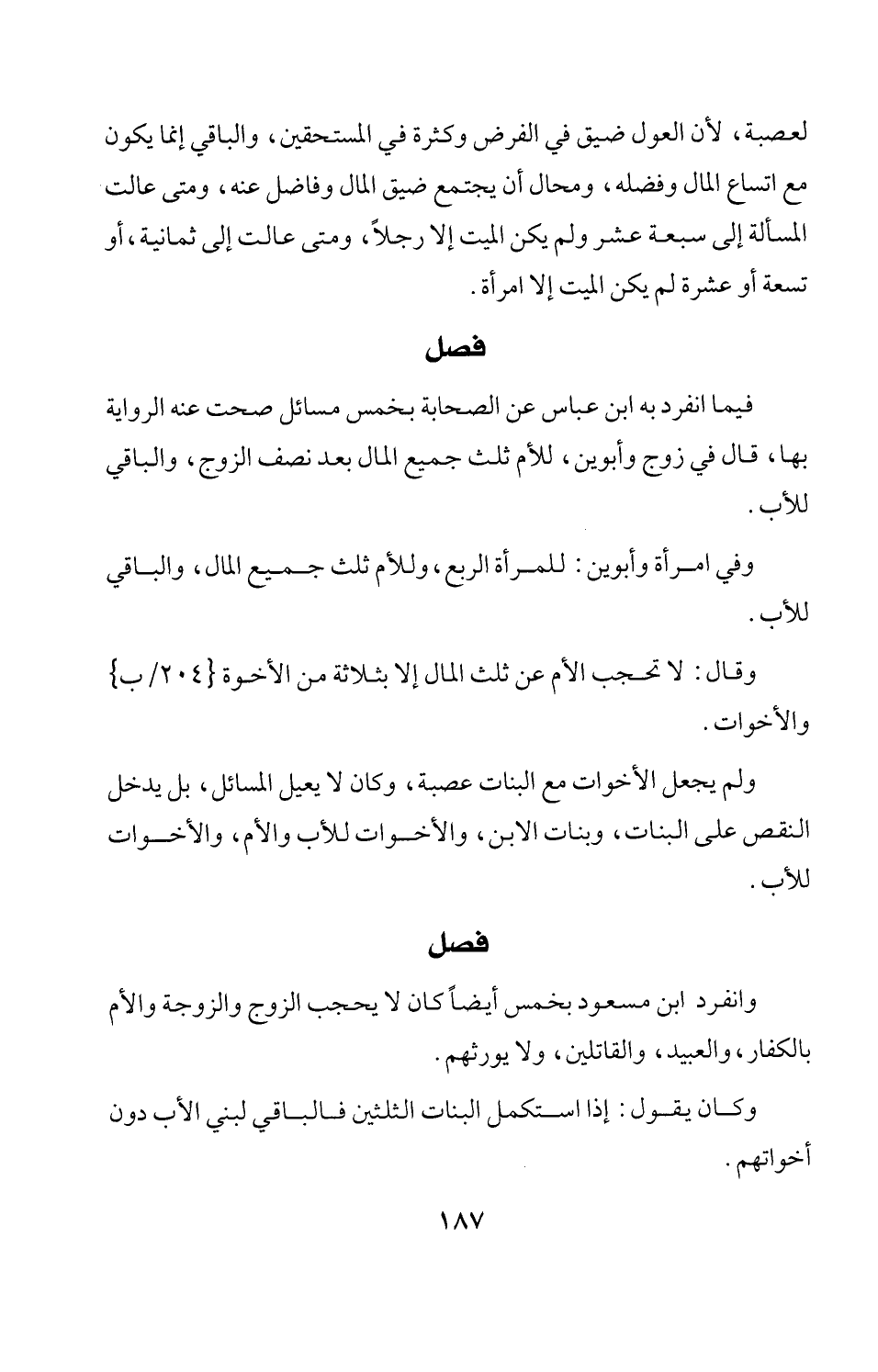 ولم يجعل الأخوات مع البنات عصبة، وكان لا يعيل المسائل، بل يدخل النقص على البنات، وبنات الابن، والأخوات للأب والأم، والأخوات للأب.