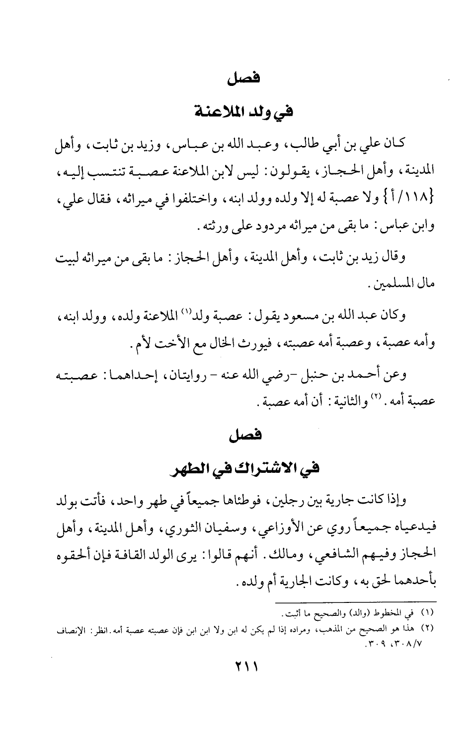 كان علي بن أبي طالب، وعبد الله بن عباس، وزيد بن ثابت، وأهل المدينة، وأهل الحجاز، يقولون: ليس لابن الملاعنة عصبة تنتسب إليه، {118/ أ} ولا عصبة له إلا ولده وولد ابنه، واختلفوا في ميراثه، فقال علي، وابن عباس: ما بقى من ميراثه مردود على ورثته.