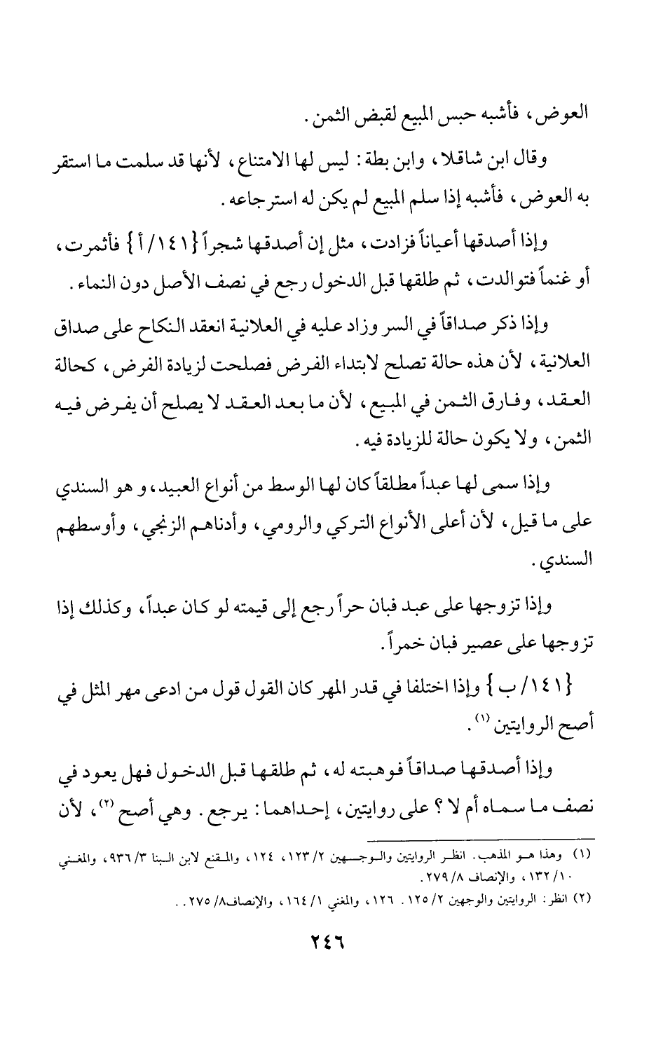 (¬2) انظر: الروايتين والوجهين 2/ 125، 126، والمغني 1/ 164، والإنصاف 8/ 275.