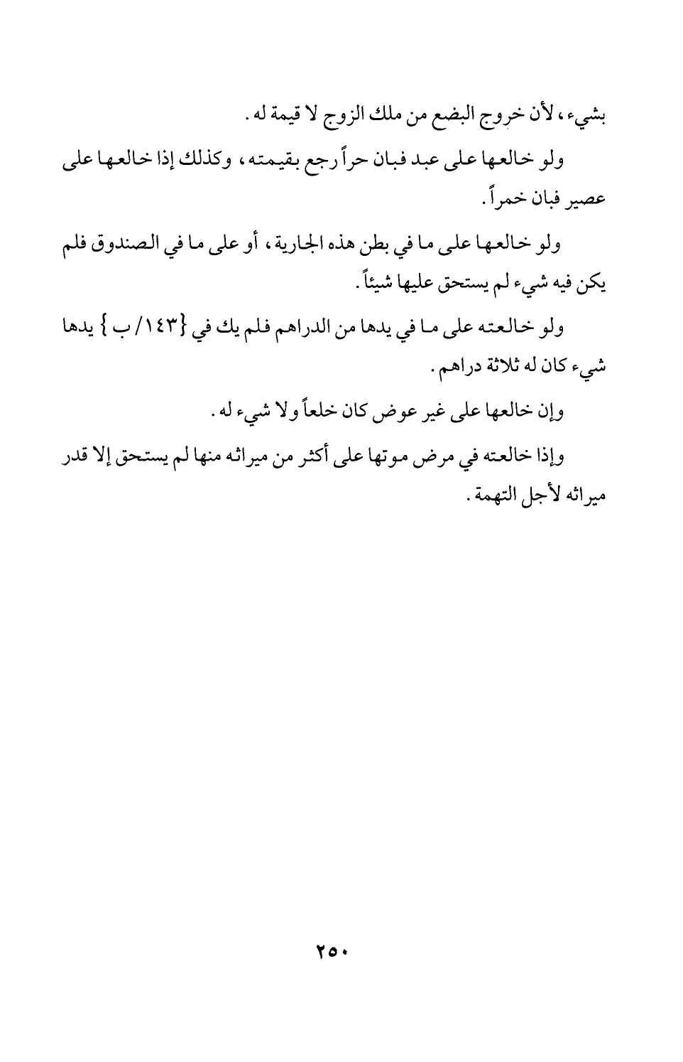 ولو خالعته على ما في يدها من الدراهم فلم يك في {143/ ب} يدها شيء كان له ثلاثة دراهم.