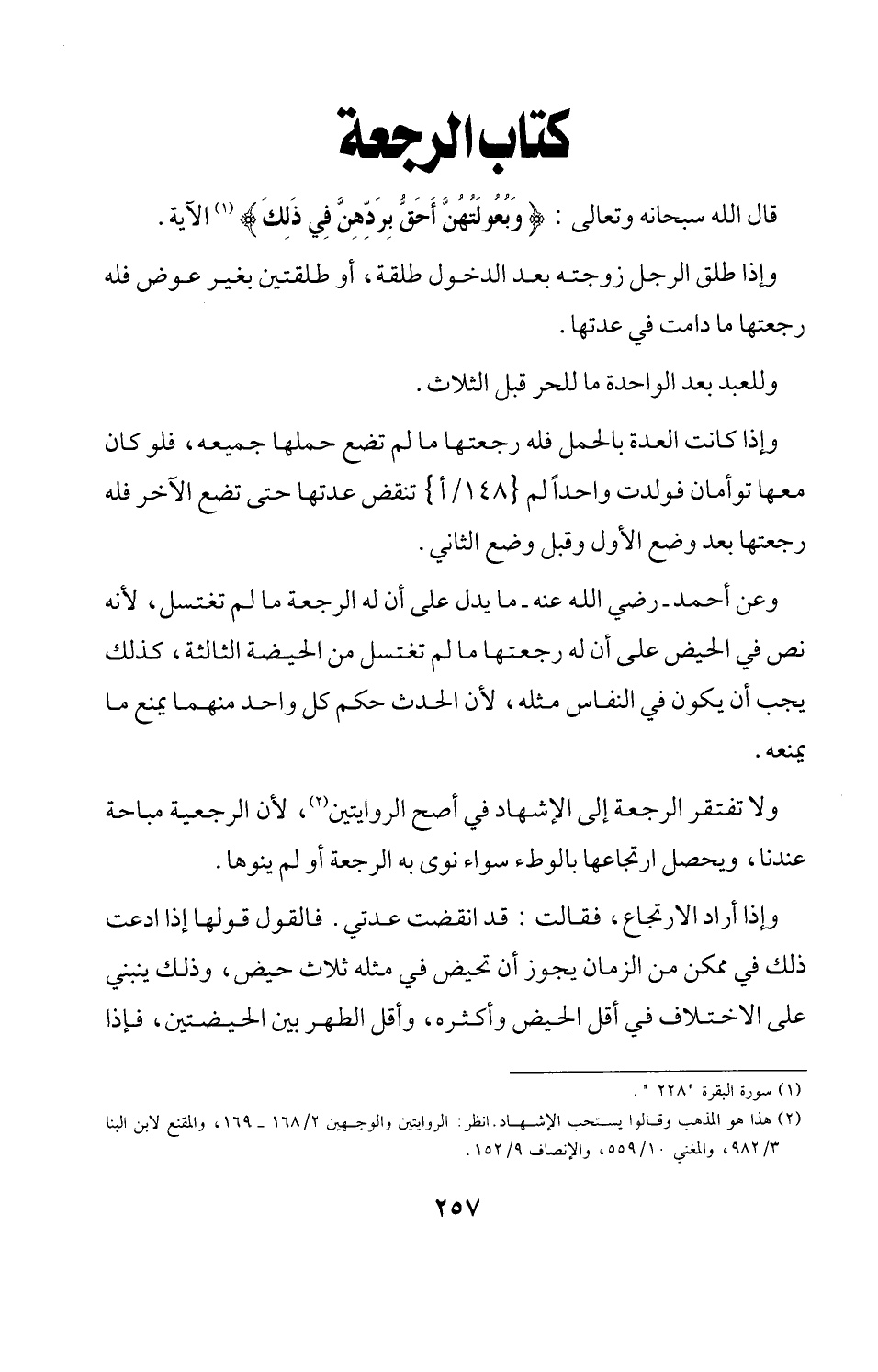 (¬2) هذا هو المذهب وقالوا يستحب الإشهاد. انظر: الروايتين والوجهين 2/ 168 - 169، والمقنع لابن البنا 3/ 982، والمغني 10/ 559، والانصاف 9/ 152.