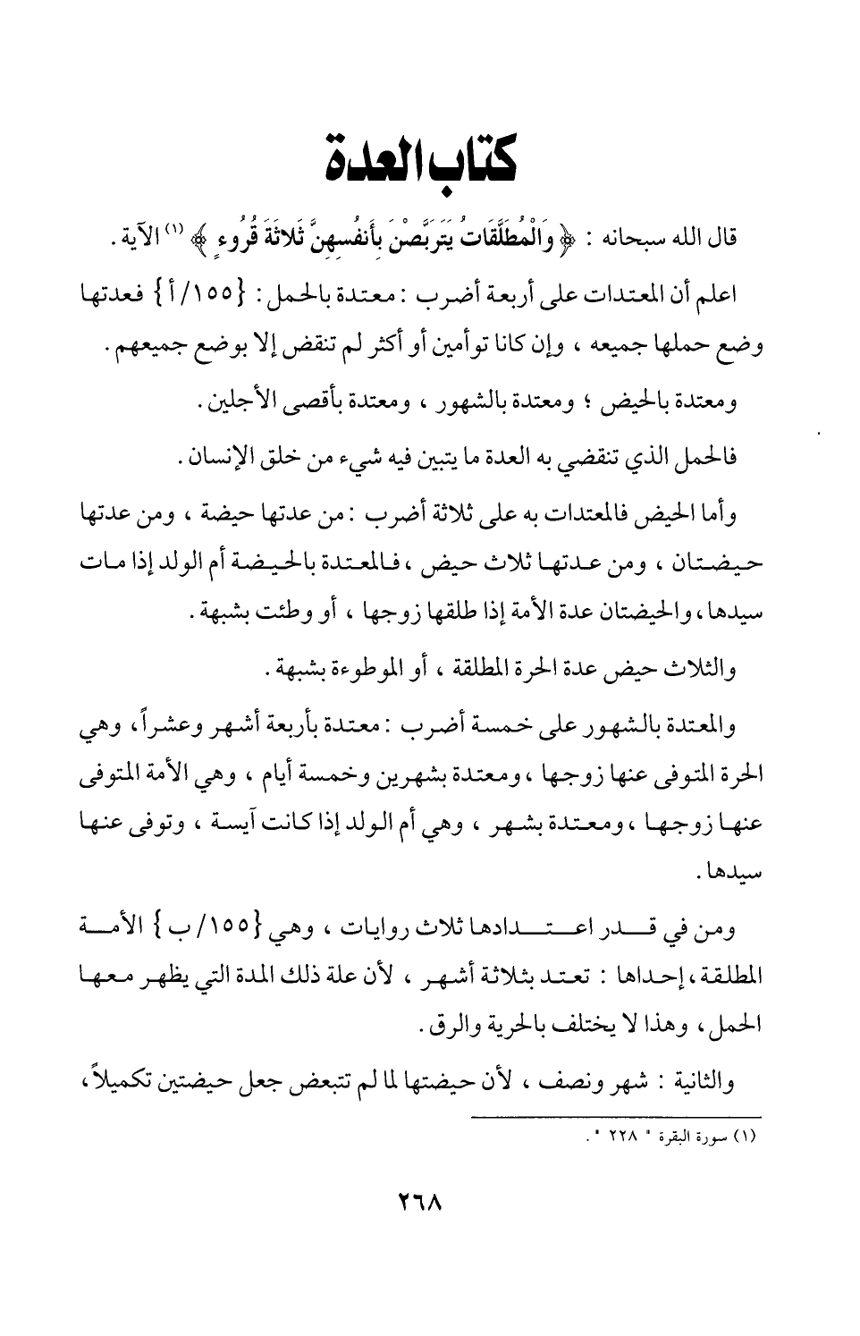 قال الله سبحانه: {وَالْمُطَلَّقَاتُ يَتَرَبَّصْنَ بِأَنْفُسِهِنَّ ثَلَاثَةَ قُرُوءٍ} (¬1) الآية.