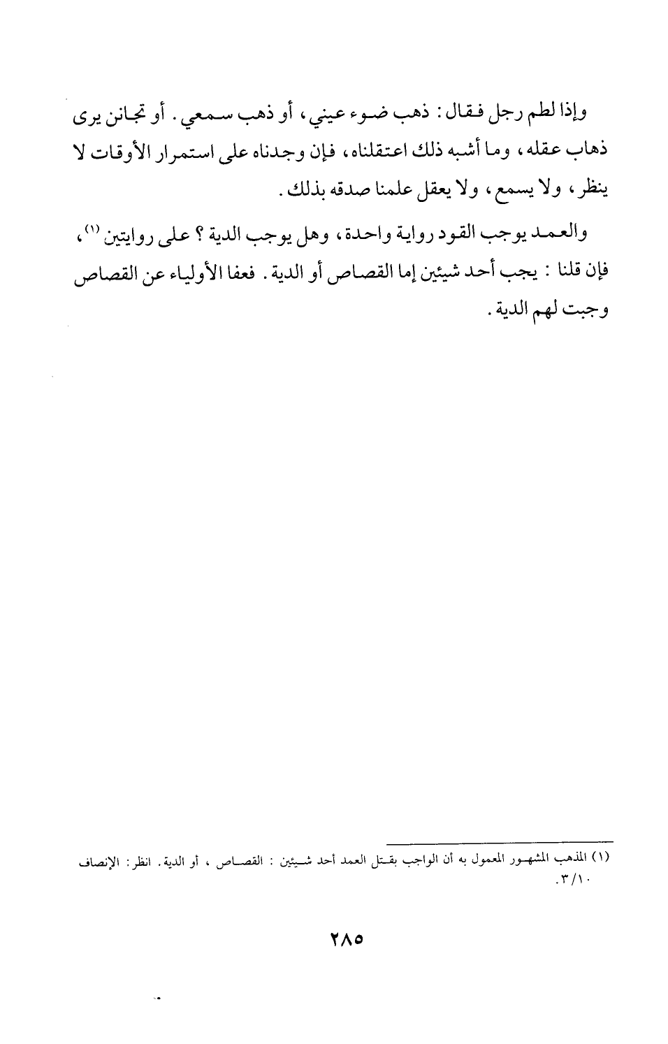 (¬1) المذهب المشهور المعمول به أن الواجب بقتل العمد أحد شيئين: القصاص، أو الدية. انظر: الإنصاف 10/ 3.