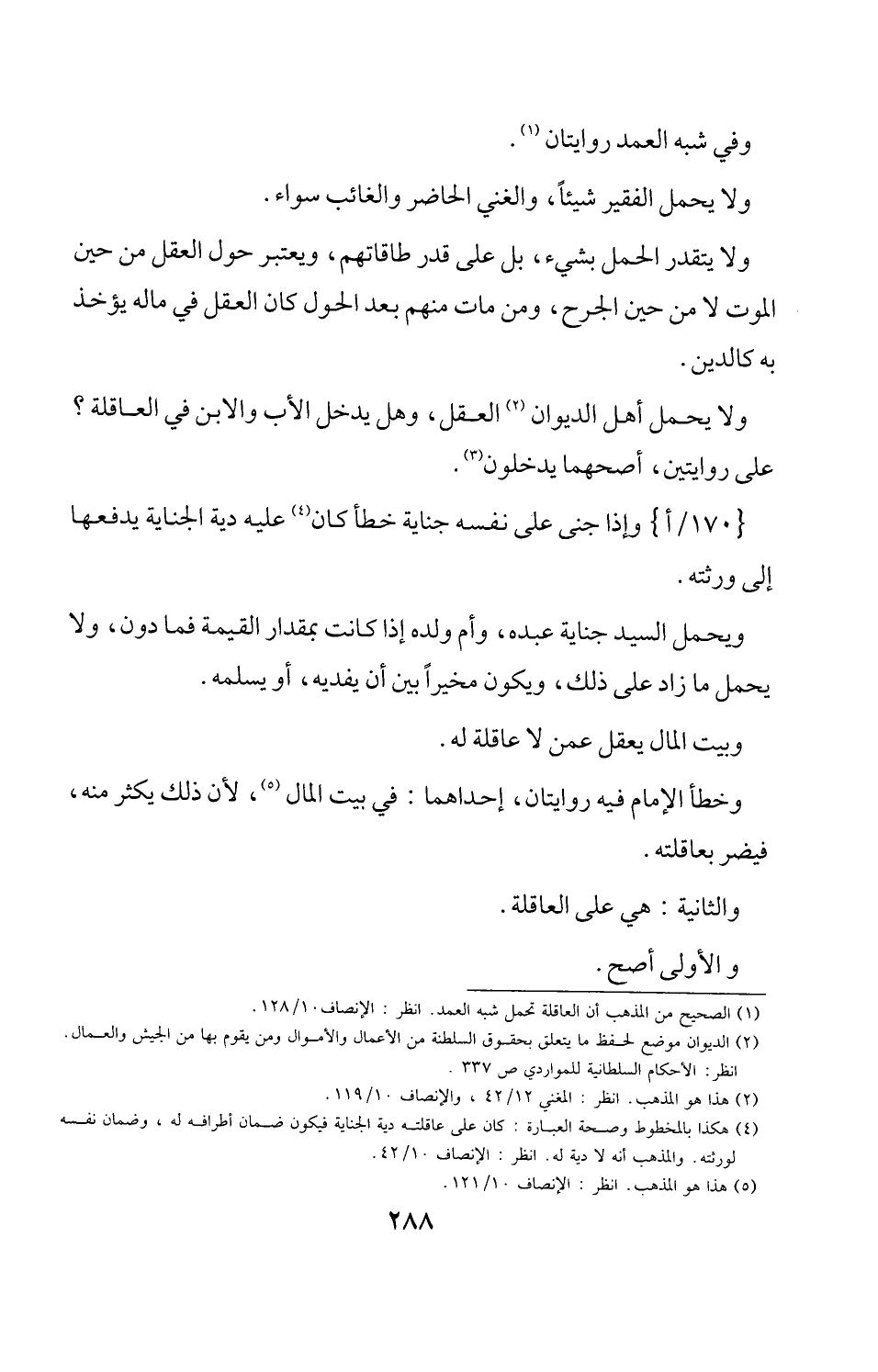 (¬1) الصحيح من المذهب أن العاقلة تحمل شبه العمد. انظر: الإنصاف 10/ 128.