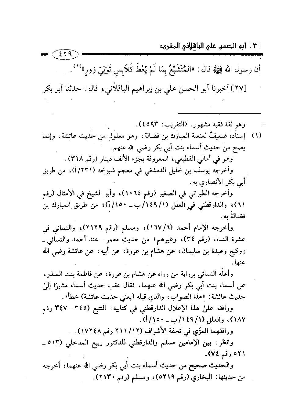 27- أخبرنا أبو الحسن علي بن إبراهيم الباقلاني قال حدثنا أبو بكر -[430]- محمد بن إسماعيل بن العباس الوراق إملاء قال حدثنا أبو حفص عمر بن إسماعيل بن سلمة الثقفي سنة خمس وثلاثمائة قال حدثنا علي بن الجعد الجوهري قال أخبرنا شعبة بن الحجاج عن علقمة بن مرثد قال سمعت سعد بن عبيدة يحدث عن أبي عبد الرحمن السلمي عن عثمان بن عفان قال شعبة: قلت: عن النبي صلى الله عليه وسلم؟ قال: نعم، قال: خيركم من تعلم القرآن وعلمه.