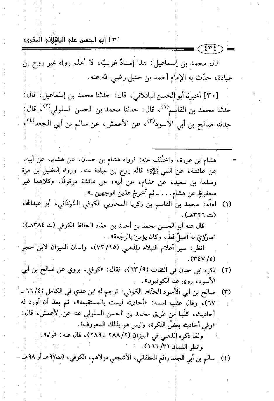 30- أخبرنا أبو الحسن الباقلاني قال حدثنا محمد بن إسماعيل قال حدثنا محمد بن القاسم قال حدثنا محمد بن الحسن السلولي قال حدثنا صالح بن أبي الأسود عن الأعمش عن سالم بن أبي الجعد -[435]- عن ثوبان قال قال رسول الله صلى الله عليه وسلم: " الأئمة من قريش ".