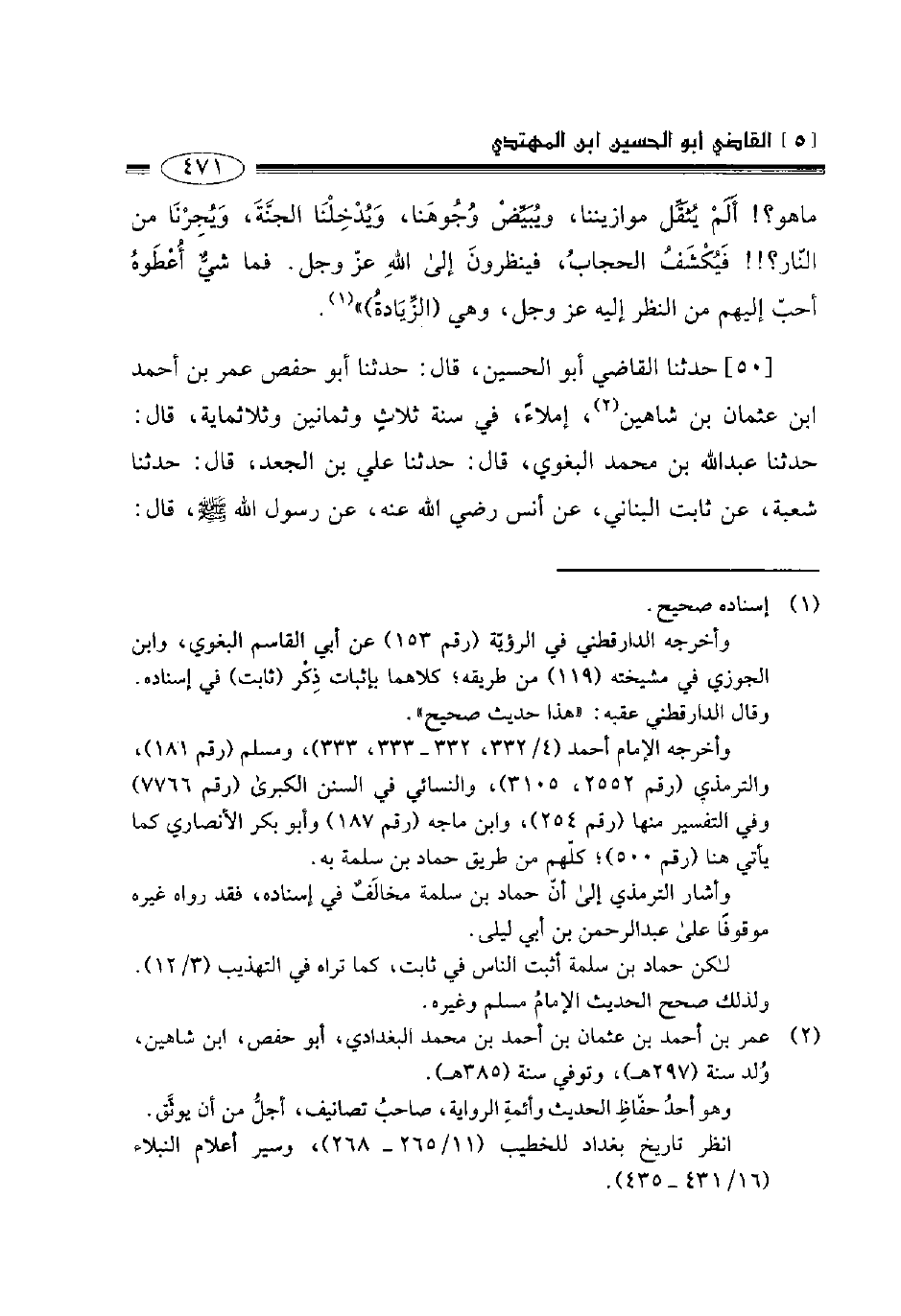 50- حدثنا القاضي أبو الحسين قال حدثنا أبو حفص عمر بن أحمد بن عثمان بن شاهين إملاء في سنة ثلاث وثمانين وثلاثمائة قال: حدثنا عبد الله بن محمد البغوي قال حدثنا علي بن الجعد قال حدثنا شعبة عن ثابت البناني عن أنس رضي الله عنه عن رسول الله صلى الله عليه وسلم قال: -[472]- " لا يتمنى المؤمن الموت لضر نزل به. فإن كان لابد فاعلا فليقل: اللهم أحيني ما كانت الحياة خيرا لي وتوفني إذا كانت الوفاة خيرا لي ".
