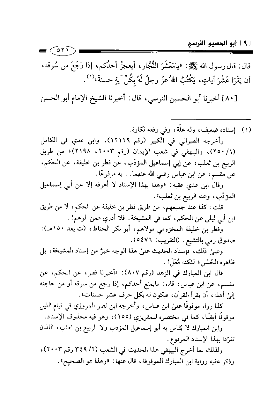 80- أخبرنا أبو الحسين النرسي قال أخبرنا الشيخ الإمام أبو الحسن -[522]- علي بن عمر بن أحمد بن مهدي الدارقطني قراءة عليه وأنا أسمع في شوال سنة خمس وثمانين وثلاثمائة قال أخبرنا أبو القاسم عبد الله بن محمد هو البغوي قال حدثنا علي بن الجعد الجوهري قال أخبرنا أبو غسان عن أبي حازم عن سهل بن سعد قال سمعت رسول الله صلى الله عليه وسلم يقول: " إن العبد ليعمل فيما يبدو للناس بعمل أهل الجنة وأنه لمن أهل النار، وإن العبد ليعمل فيما بين الناس بعمل أهل النار وإنه لمن أهل الجنة وإنما الأعمال بالخواتيم ".