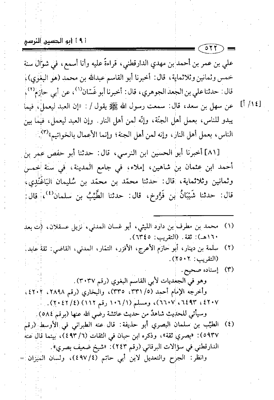 81- أخبرنا أبو الحسين ابن النرسي قال حدثنا أبو حفص عمر بن أحمد بن عثمان بن شاهين إملاء في جامع المدينة في سنة خمس وثمانين وثلاثمائة قال حدثنا محمد بن محمد بن سليمان الباغندي قال حدثنا شيبان بن فروخ قال حدثنا الطيب بن سلمان قال -[523]- سمعت عمرة تقول سمعت عائشة رضي الله عنها تقول: سمعت رسول الله صلى الله عليه وسلم: " ينهى عن الوصال في الصيام ويأمر بتبكير الإفطار وتأخير السحور ".