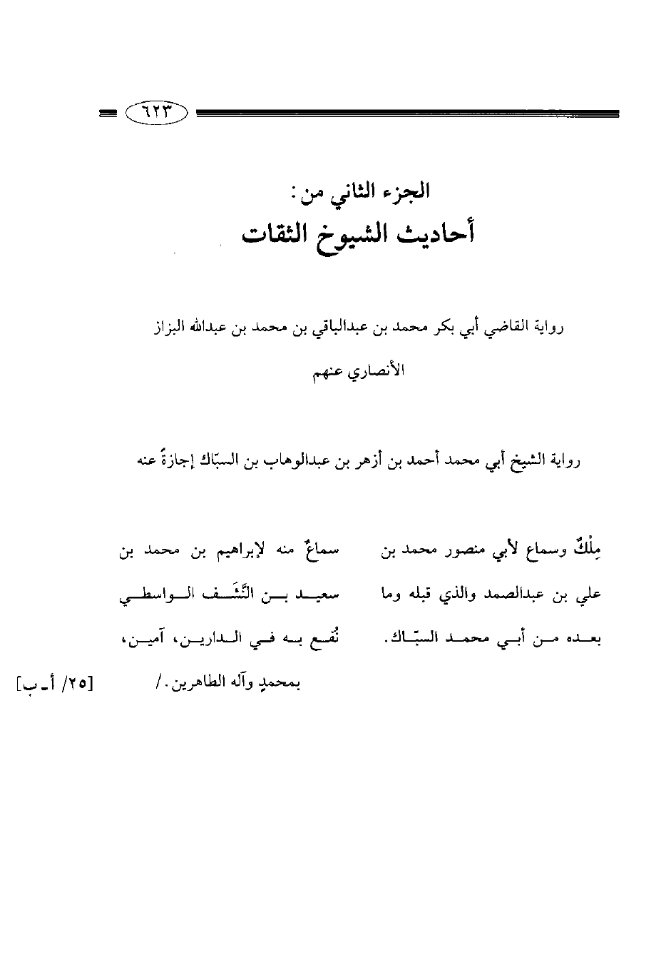 رواية الشيخ أبي محمد أحمد بن أزهر بن عبد الوهاب بن السباك إجازة عنه