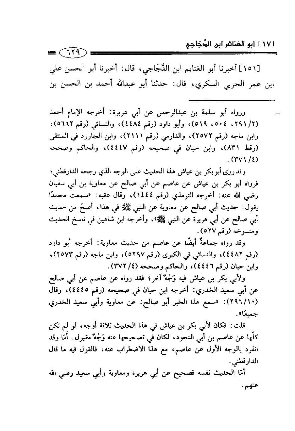 151- أخبرنا أبو الغنايم ابن الدجاجي قال أخبرنا أبو الحسن علي بن عمر الحربي السكري قال حدثنا أبو عبد الله أحمد بن الحسن بن -[630]- عبد الجبار الصوفي قال حدثنا الهيثم بن خارجة قال حدثنا إسماعيل بن عياش عن ابن جريج عن ابن أبي مليكة عن عائشة رضي الله عنها عن النبي صلى الله عليه وسلم قال: " إذا قاء الرجل في صلاته أو رعف فلينصرف فليتوضأ ولا يتكلم ثم يبني على ما مضى من صلاته ".