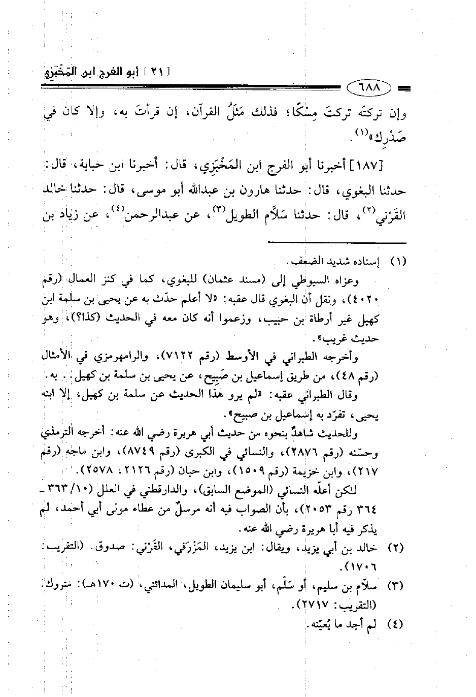 187- أخبرنا أبو الفرج ابن المخبزي قال أخبرنا ابن حبابة قال: حدثنا البغوي قال حدثنا هارون بن عبد الله أبو موسى قال حدثنا خالد القرني قال حدثنا سلام الطويل عن عبد الرحمن عن زياد بن -[689]- أبي مريم عن عثمان قال قال رسول الله صلى الله عليه وسلم: " أجيبوا الداعي وعودوا المريض والعيادة غبا أو ربعا إلا أن يكون مغلوبا فلا يعاد وخير العيادة أخفها والتعزية مرة ".