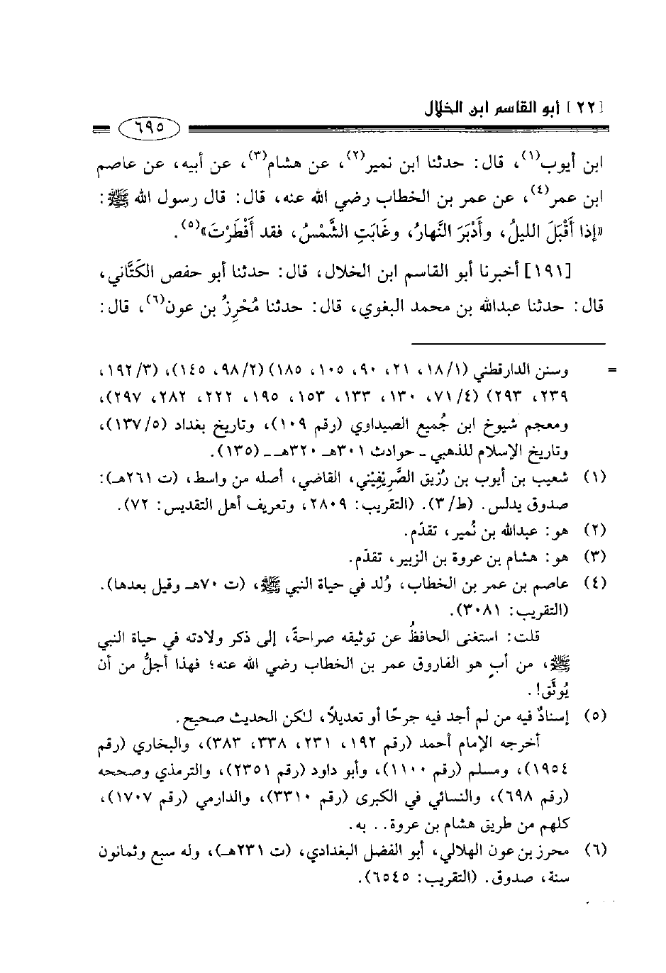 191- أخبرنا أبو القاسم ابن الخلال قال حدثنا أبو حفص الكتاني قال حدثنا عبد الله بن محمد البغوي قال حدثنا محرز بن عون قال: -[696]- حدثنا مالك بن أنس عن نافع عن ابن عمر أن رسول الله صلى الله عليه وسلم: " نهى عن الشغار ".