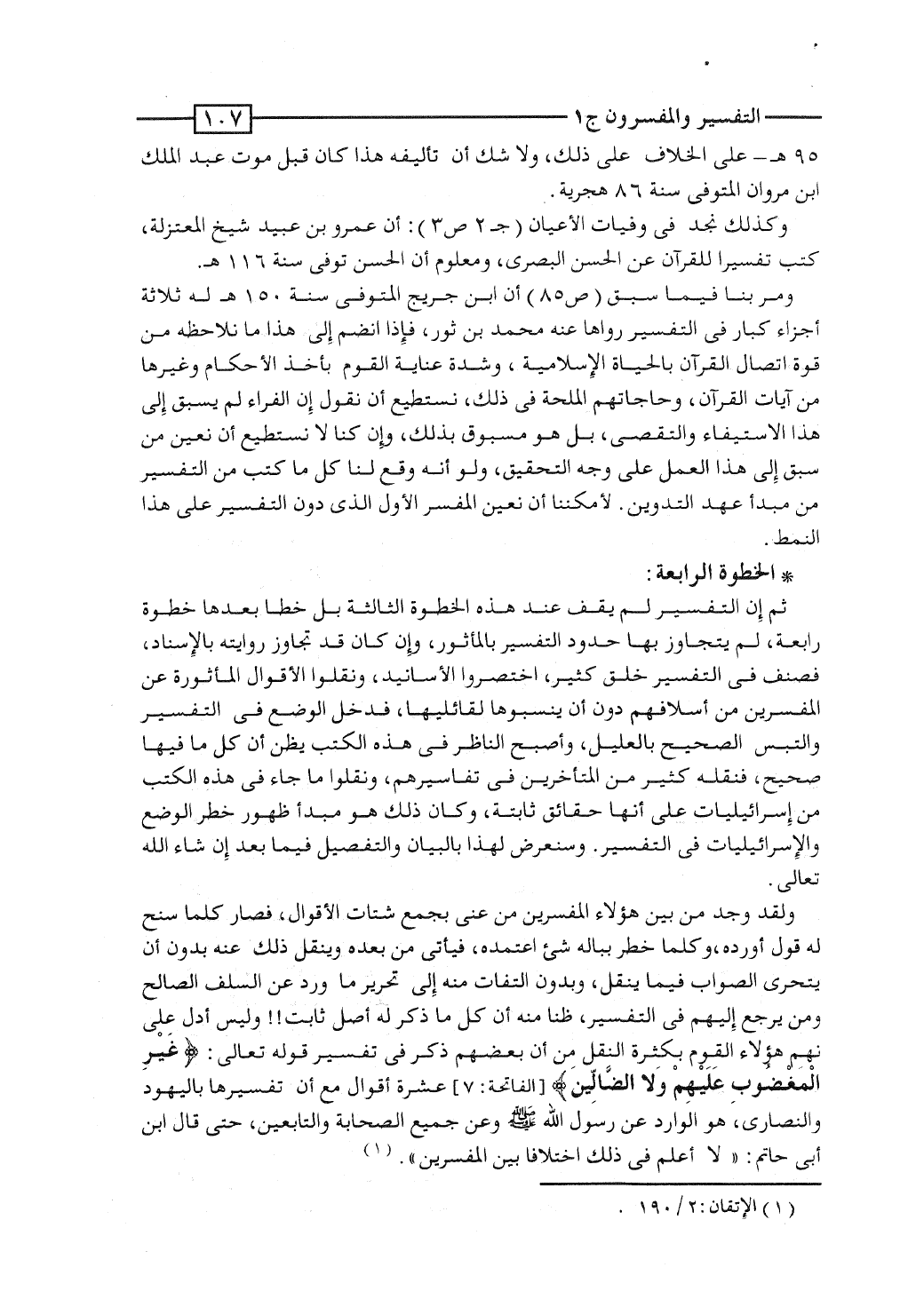 ثم إن التفسير لم يقف عند هذه الخطوة الثالثة بل خطا بعدها خطوة رابعة، لم يتجاوز بها حدود التفسير بالمأثور، وإن كان قد تجاوز روايته بالإسناد، فصنَّف فى التفسير خلق كثير، اختصروا الأسانيد، ونقلوا الأقوال المأثورة عن المفسِّرين من أسلافهم دون أن ينسبوها لقائليها، فدخل الوضع فى التفسير والتبس الصحيح بالعليل، وأصبح الناظر فى هذه الكتب يظن أن كل ما فيها صحيح، فنقله كثير من المتأخرين فى تفاسيرهم، ونقلوا ما جاء فى هذه الكتب من إسرائيليات على أنها حقائق ثابتة، وكان ذلك هو مبدأ ظهور خطر الوضع والإسرئليات فى التفسير. وسنعرض لهذا بالبيان والتفصيل فيما بعد إن شاء الله تعالى.