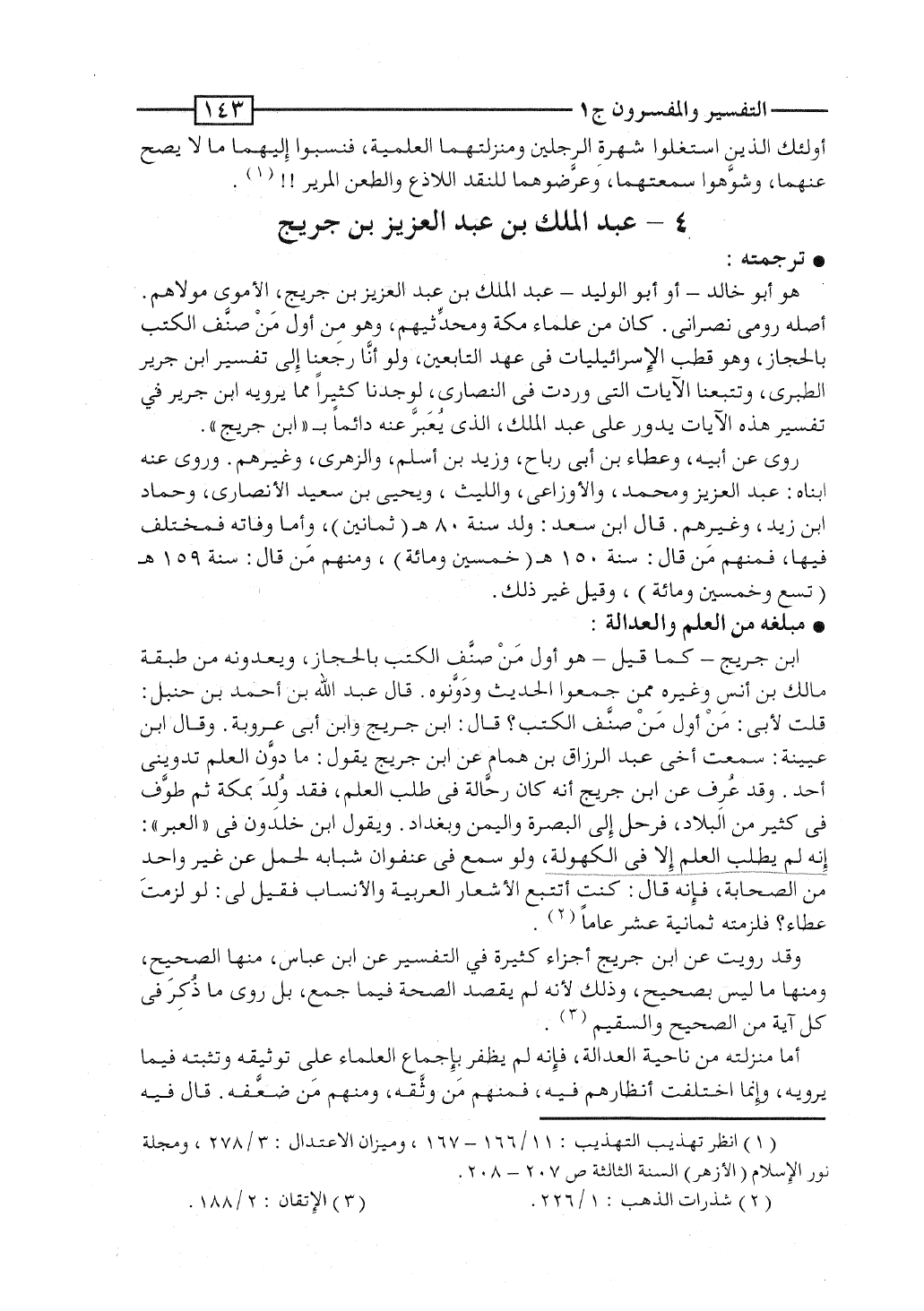 هو أبو خالد - أو أبو الوليد - عبد الملك بن عبد العزيز بن جريج، الأموى مولاهم - أصله رومى نصرانى. كان من علماء مكة ومحدِّثيهم، وهو مِن أول مَنْ صنَّف الكتب بالحجاز، وهو قطب الإسرائيليات فى عهد التابعين، ولو أنَّا رجعنا إلى تفسير ابن جرير الطبرى، وتتعبنا الآيات التى وردت فى النصارى، لوجدنا كثيراً مما يرويه ابن جرير فى تفسير هذه الآيات يدور على عبد الملك، الذى يُعَبِّر عنه دائماً بـ "ابن جريج".