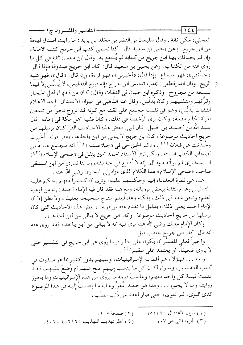 وأخيراً فعلى المفسِّر أن يكون على حذر فيما رُوِى عن ابن جريج فى التفسير حتى لا يروى ضعيفاً، أو يعتمد على سقيم.
