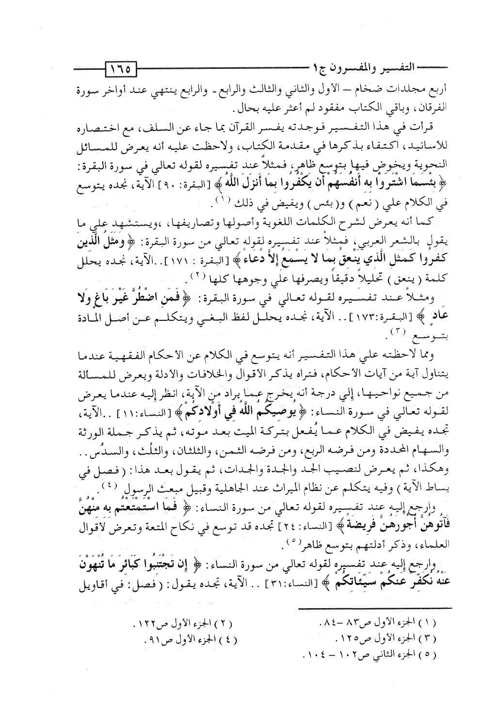 قرأتُ فى هذا التفسير فوجدته يُفسِّر القرآن بما جاء عن السَلَف، مع اختصاره للأسانيد، اكتفاءً بذكرها فى مقدمة الكتاب، ولاحظتُ عليه أنه يعرض للمسائل النحوية ويخوض فيها بتوسع ظاهر، فمثلاً عند تفسيره لقوله تعالى فى الآية [90] من سورة البقرة: {بِئْسَمَا اشتروا بِهِ أَنْفُسَهُمْ أَن يَكْفُرُواْ بِمَآ أنَزَلَ الله} .. الآية، نجده يتوسع فى الكلام على "نِعْمَ" و "بِئْسَ" ويفيض فى ذلك.