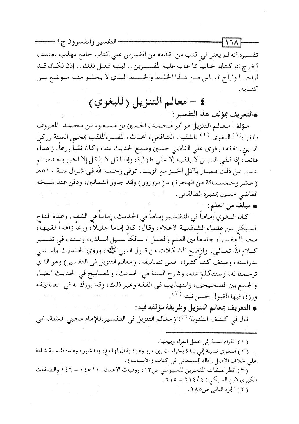 قال فى كشف الظنون: "معالم التنزيل فى التفسير، للإمام محيى السُّنَّة، أبى