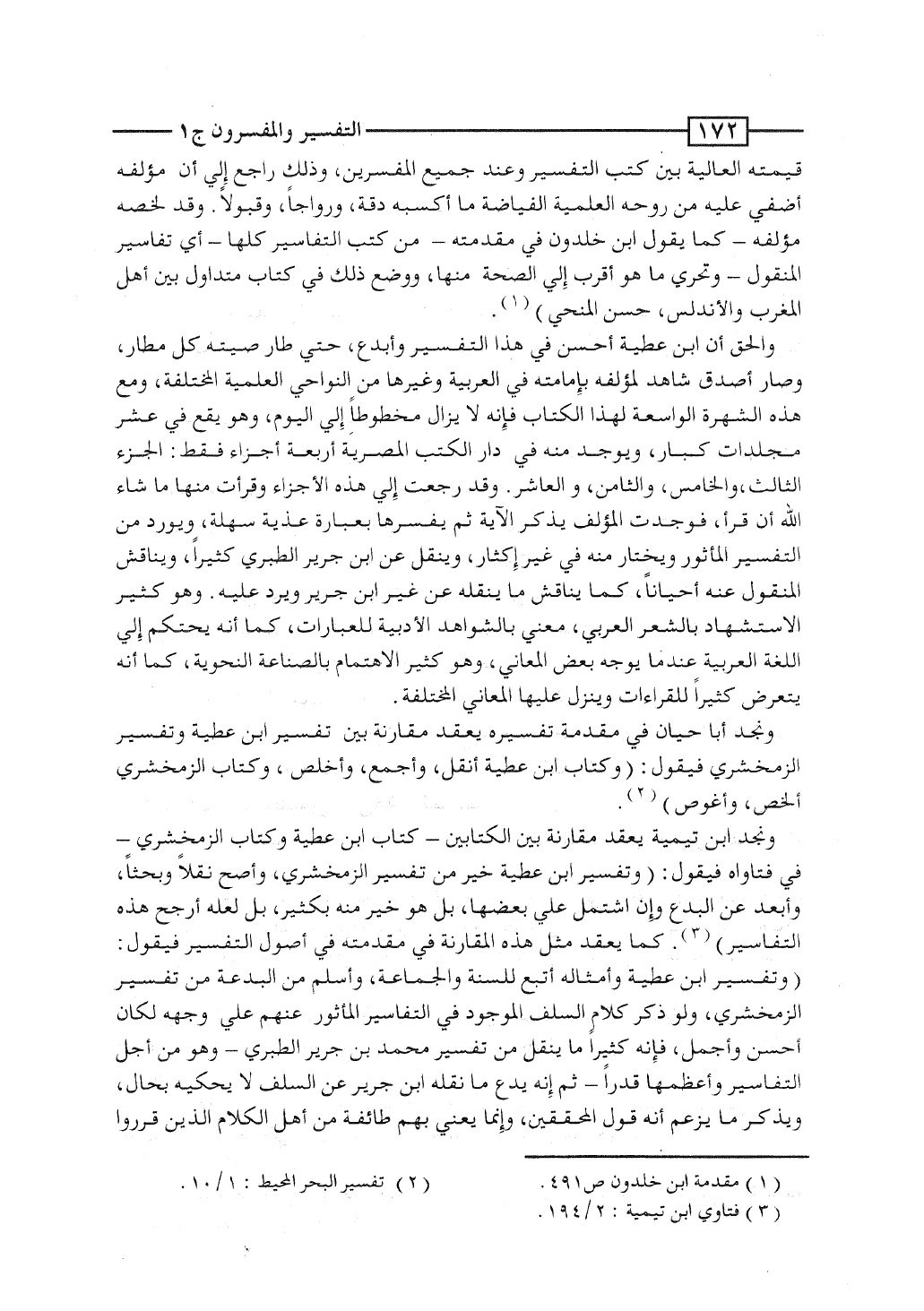ونجد أبا حيان فى مقدمة تفسيره يعقد مقارنة بين تفسير ابن عطية وتفسير الزمخشرى فيقول: "وكتاب ابن عطية أنقل، وأجمع، وأخلص، وكتاب الزمخشرى ألخص، وأغوص".
