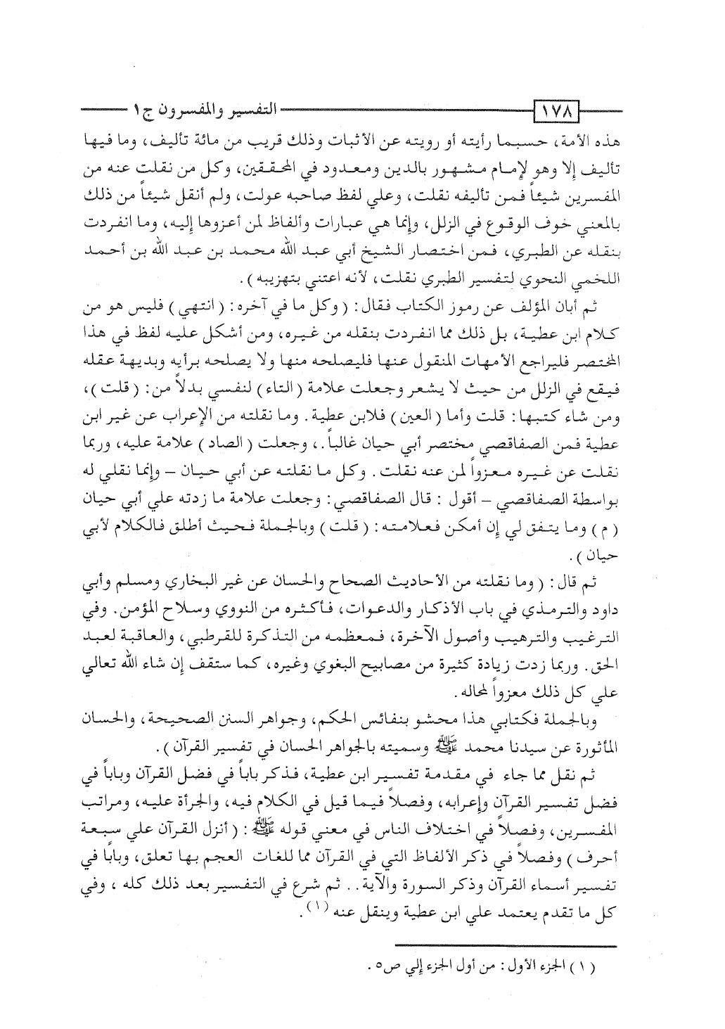ثم نقل مما جاء فى مقدمة تفسير ابن عطية، فذكر باباً فى فضل القرآن، وباباً فى فضل تفسير القرآن وإعرابه، وفصلاً فيما قيل فى الكلام فيه، والجرأة عليه، ومراتب المفسِّرين، وفصلاً فى اختلاف الناس فى معنى قوله صلى الله عليه وسلم: "أُنزِل القرآن على سبعة أحرف"، وفصلاً فى ذكر الألفاظ التى فى القرآن مما للغات العجم بها تعلق، وباباً فى تفسير أسماء القرآن وذكر السورة والآية.. ثم شرع فى التفسير بعد ذلك كله، وفى كل ما تقدَّم يعتمد على ابن عطية وينقل عنه.