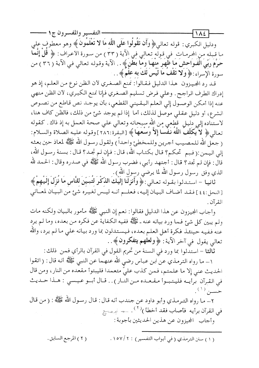 1 - ما رواه الترمذى عن ابن عباس رضى الله عنهما عن النبى صلى الله عليه وسلم أنه قال: "اتقوا الحديث عنى إلا ما علمتم، فمَن كذب علىّ متعمداً فليتبوأ مقعده من النار، ومَن قال فى القرآن برأيه فليتبوأ مقعده من النار".. قال أبو عيسى: هذا حديث حسن.
