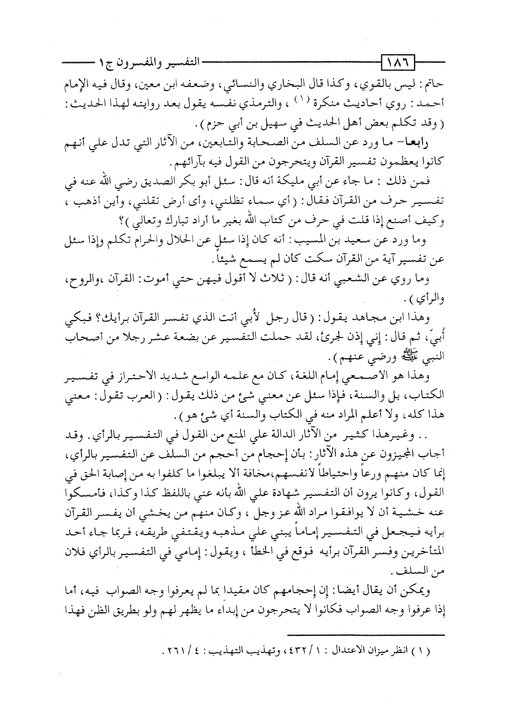 وهذا هو الأصمعى إمام اللغة، كان مع علمه الواسع شديد الاحتراز فى تفسير الكتاب، بل والسُّنَّة، فإذا سُئل عن معنى شئ من ذلك يقول: "العرب تقول: معنى هذا كذا، ولا أعلم المراد منه فى الكتاب والسُّنَّة أى شئ هو".