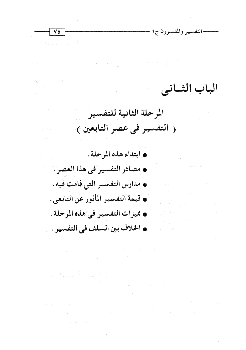 الباب الثانى: المرحلة الثانية للتفسير أو التفسير فى عصر التابعين