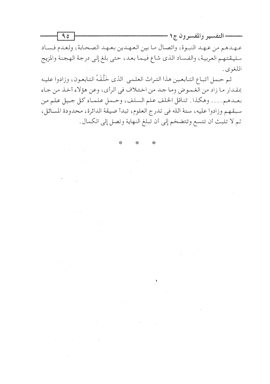 ثم حمل أتباع التابعين هذا التراث العلمى الذى خَلَّفَهُ التابعون، وزادوا عليه بمقدار ما زاد من الغموض وما جَدَّ من اختلاف فى الرأى، وعن هؤلاء أخذ مَن جاء بعدهم ... وهكذا. تناقل الخَلَفُ عِلم السَلَف، وحمل علماء كل جيل علم مَن سبقهم وزادوا عليه، سُّنَّة الله فى تدرج العلوم، تبدأ ضيقة الدائرة، محدودة المسائل، ثم لا تلبث أن تتسع وتتضخم إلى أن تبلغ النهاية وتصل إلى الكمال.