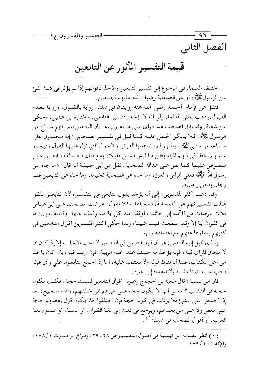 والذى تميل إليه النفس: هو أن قول التابعى فى التفسير لا يجب الأخذ به إلا إذا كان مما لا مجال للرأى فيه، فإنه يؤخذ به حينئذ عند عدم الريبة، فإن ارتبنا فيه، بأن كان يأخذ من أهل الكتاب، فلنا أن نترك قوله ولا نعتمد عليه، أما إذا أجمع التابعون على رأى فإنه يجب علينا أن نأخذ به ولا نتعداه إلى غيره.