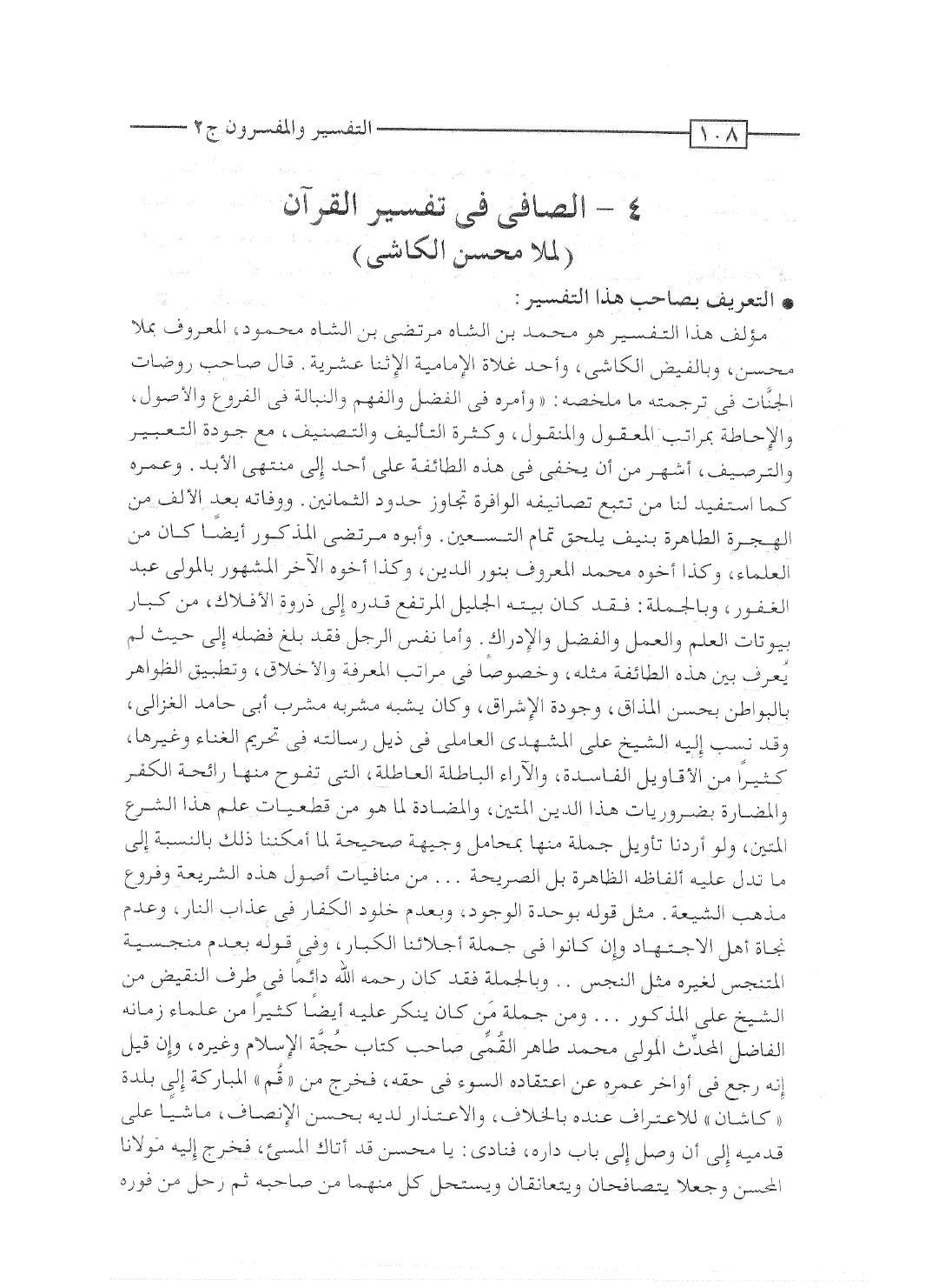 مؤلف هذا التفسير هو محمد بن الشاه مرتضى بن الشاه محمود، المعروف بملا محسن، وبالفيض الكاشى، وأحد غلاة الإمامية الإثنا عشرية. قال صاحب روضات الجنَّات فى ترجمته ما ملخصه: "وأمره فى الفضل والفهم والنبالة فى الفروع والأصول، والإحاطة بمراتب المعقول والمنقول، وكثرة التأليف والتصنيف، مع جودة التعبير والترصيف، أشهر من أن يخفى فى هذه الطائفة على أحد إلى منتهى الأبد. وعمره كما استفيد لنا من تتبع تصانيفه الوافرة تجاوز حدود الثمانين. ووفاته بعد الألف من الهجرة الطاهرة بنيف يلحق تمام التسعين. وأبوه مرتضى المذكور أيضاً كان من العلماء، وكذا أخوه محمد المعروف بنور الدين، وكذا أخوه الآخر المشهور بالمولى عبد الغفور، وبالجملة: فقد كان بيته الجليل المرتفع قدره إلى ذروة الأفلاك، من كبار بيوتات العلم والعمل والفضل والإدراك. وأما نفس الرجل فقد بلغ فضله إلى حيث لم يُعرف بين هذه الطائفة مثله، وخصوصاً فى مراتب المعرفة والأخلاق، وتطبيق الظواهر بالبواطن بحسن المذاق، وجودة الإشراق، وكان يشبه مشربه مشرب أبى حامد الغزالى، وقد نسب إليه الشيخ على المشهدى العاملى فى ذيل رسالته فى تحريم الغناء وغيرها، كثيراً من الأقاويل الفاسدة، والآراء الباطلة والعاطلة، التى تفوح منها رائحة الكفر والمضارة بضروريات هذا الدين المتين، والمضادة لما هو من قطعيات علم هذا الشرع المتين، ولو أردنا تأويل جملة منها بمحامل وجيهة صحيحة لما أمكننا ذلك بالنسبة إلى ما تدل عليه ألفاظه الظاهرة بل الصريحة ... من منافيات أصول هذه الشريعة وفروع مذهب الشيعة. مثل قوله بوحدة الوجود، وبعدم خلود الكفار فى عذاب النار، وعدم نجاة أهل الاجتهاد وإن كانوا فى جملة أجلائنا الكبار، وفى قوله بعدم منجسية المتنجس لغيره مثل النجس.. وبالجملة فقد كان رحمه الله دائماً فى طرف النقيض من الشيخ على المذكور ... ومن جملة مَن كان ينكر عليه أيضاً كثيراً من علماء زمانه الفاضل المحدِّث المولى محمد طاهر القُمِّى صاحب كتاب حُجَّة الإسلام وغيره، وإن قيل إنه رجع فى أواخر عمره عن اعتقاده السوء فى حقه، فخرج من "قُم" المباركة إلى بلدة" كاشان" للاعتراف عنده بالخلاف، والاعتذار