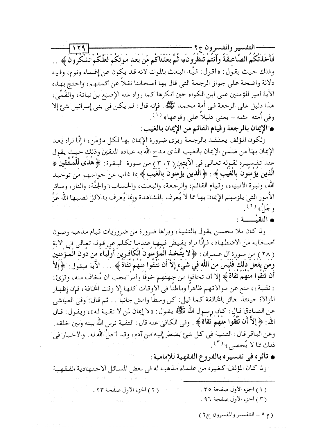 فَأَخَذَتْكُمُ الصاعقة وَأَنْتُمْ تَنظُرُونَ * ثُمَّ بَعَثْنَاكُم مِّن بَعْدِ مَوْتِكُمْ لَعَلَّكُمْ تَشْكُرُونَ} .. وذلك حيث يقول: "أقول: قيَّد البعث بالموت لأنه قد يكون عن إغماء ونوم، وفيه دلالة واضحة على جواز الرجعة التى قال بها أصحابنا نقلاً عن أئمتهم، واحتج بهذه الآية أمير المؤمنين على ابن الكواء حين أنكرها كما رواه عنه الإصبع بن نباتة، والقُمِّى، هذا دليل على الرجعة فى أُمة محمد صلى الله عليه وسلم. فإنه قال: لم يكن فى بنى إسرائيل شئ إلا وفى أُمته مثله - يعنى دليلاً على وقوعها".