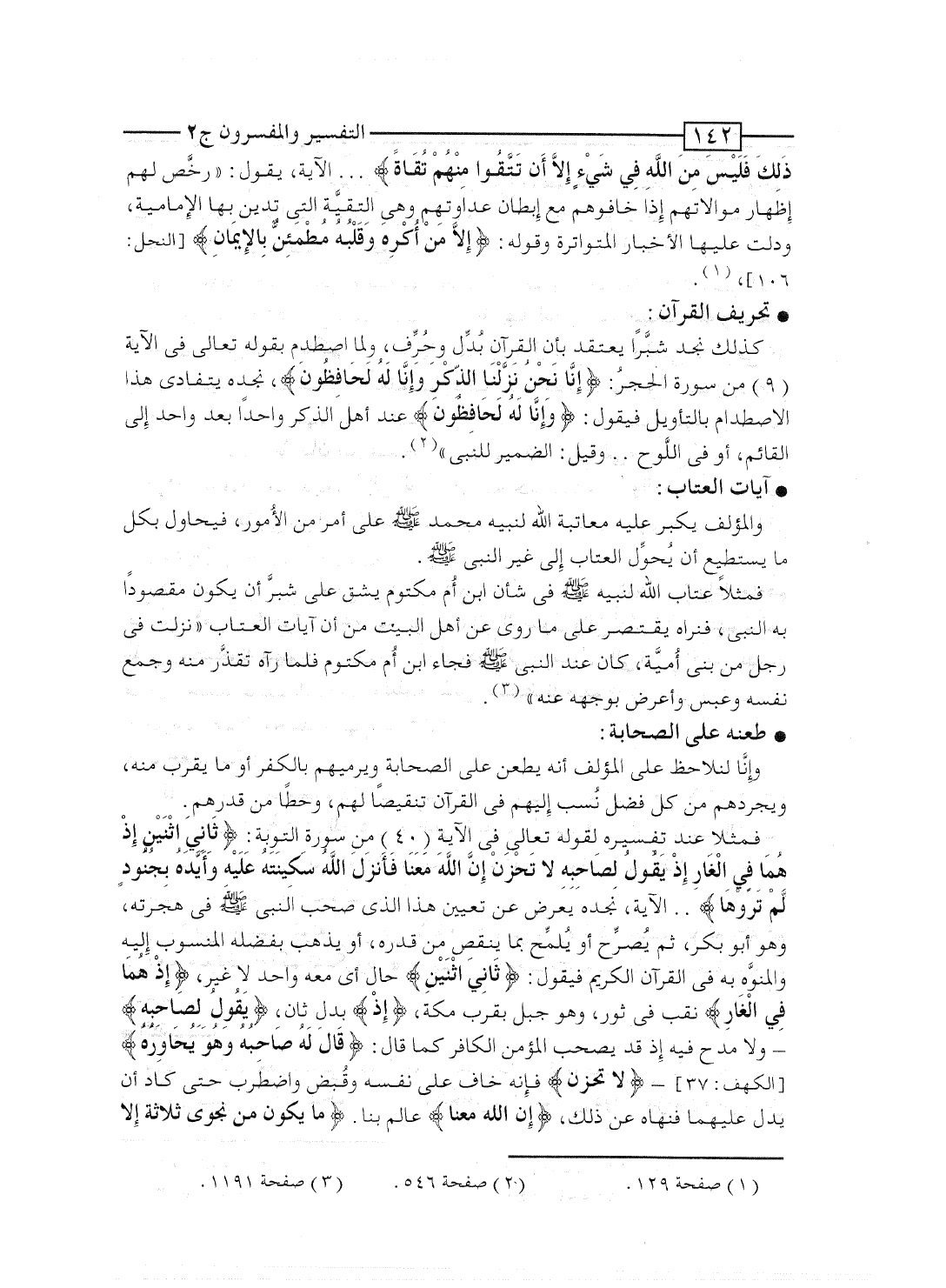 وإنَّا لنلاحظ على المؤلف أنه يطعن على الصحابة ويرميهم بالكفر أو ما يقرب منه، ويجردهم من كل فضل نُسب إليهم فى القرآن تنقيصاً لهم، وحطاً من قدرهم.