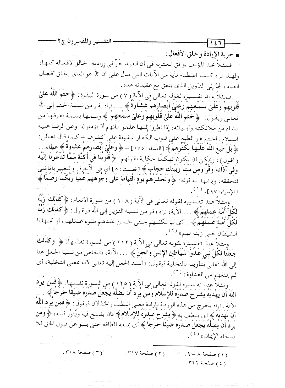 فمثلاً نجد المؤلف يوافق المعتزلة فى أن العبد حُرٌ فى إرادته. خالق لأفعاله كلها، ولهذا نراه كلما اصطدم بآية من الآيات التى تدل على أن الله هو الذى يخلق أفعال العباد، لجأ إلى التأويل الذى يتفق مع عقيدته هذه.