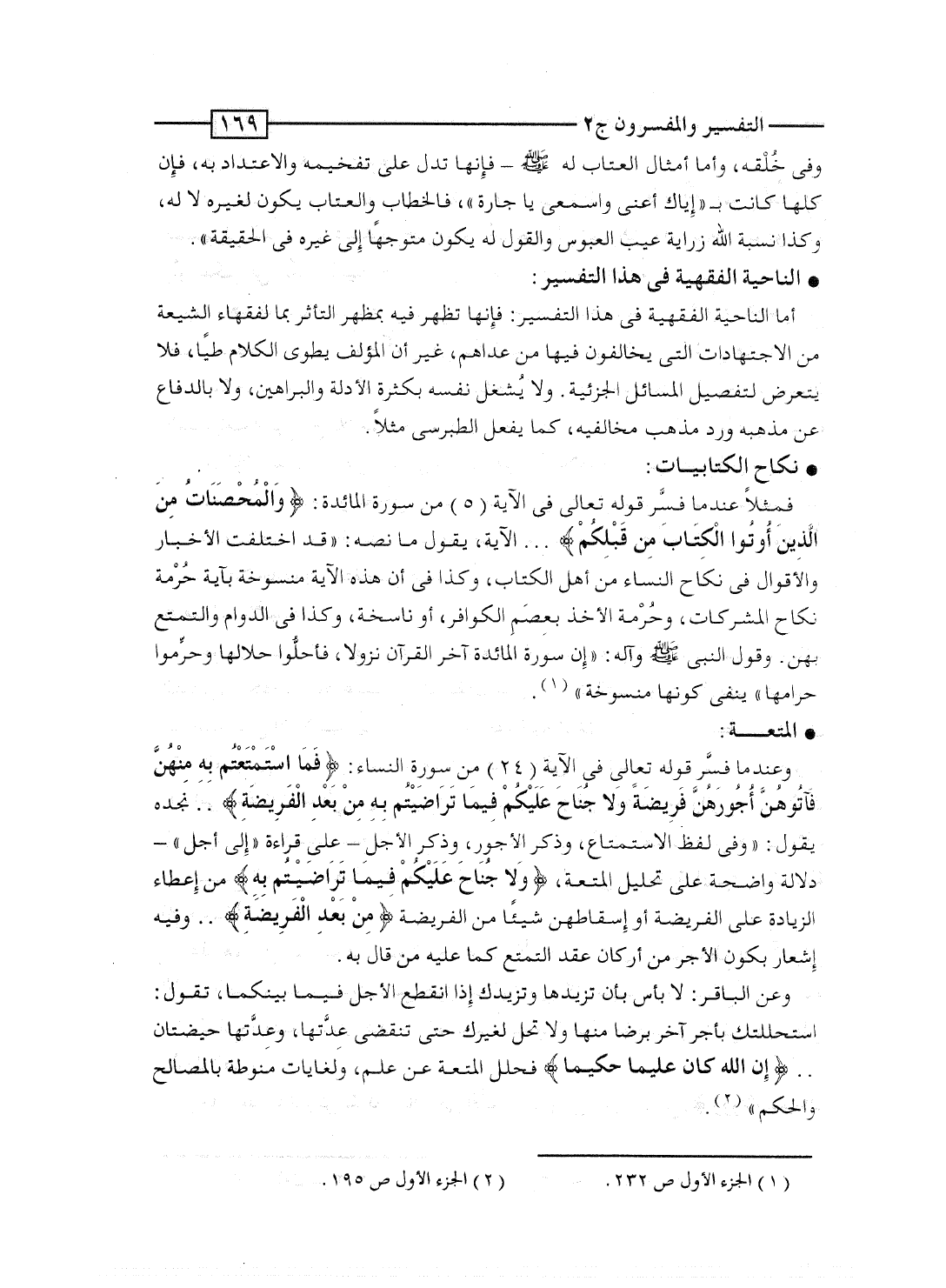 وعندما فسَّر قوله تعالى فى الآية [24] من سورة النساء: {فَمَا استمتعتم بِهِ مِنْهُنَّ فَآتُوهُنَّ أُجُورَهُنَّ فَرِيضَةً وَلاَ جُنَاحَ عَلَيْكُمْ فِيمَا تَرَاضَيْتُمْ بِهِ مِن بَعْدِ الفريضة} .. نجده يقول: "وفى لفظ الاستمتاع، وذكر الأجور، وذكر الأجل - على قراءة "إلى أجل" - دلالة واضحة على تحليل المتعة، {وَلاَ جُنَاحَ عَلَيْكُمْ فِيمَا تَرَاضَيْتُمْ بِهِ} من إعطاء الزيادة على الفريضة أو إسقاطهن شيئاً من الفريضة {مِن بَعْدِ الفريضة} .. وفيه إشعار بكون الأجر من أركان عقد التمتع كما عليه من قال به.