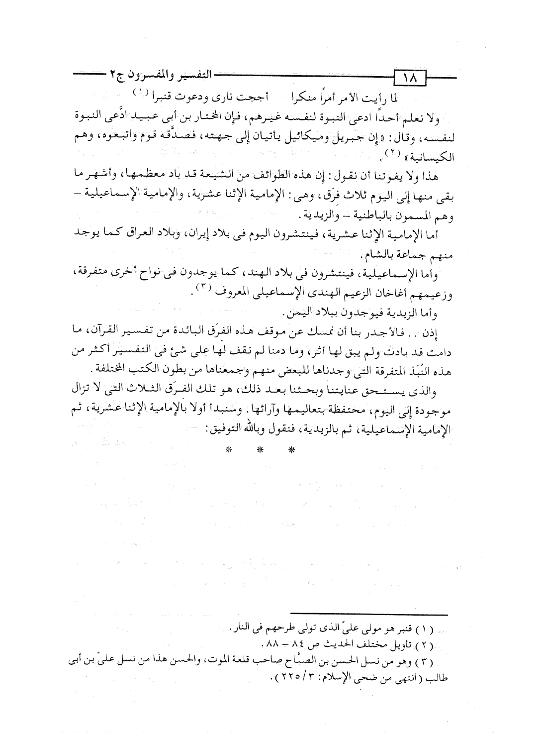 والذى يستحق عنايتنا وبحثنا بعد ذلك، هو تلك الفِرَق الثلاث التى لا تزال موجودة إلى اليوم، محتفظة بتعاليمها وآرائها. وسنبدأ أولاً بالإمامية الإثنا عشرية، ثم الإمامية الإسماعيلية، ثم بالزيدية، فنقول وبالله التوفيق: