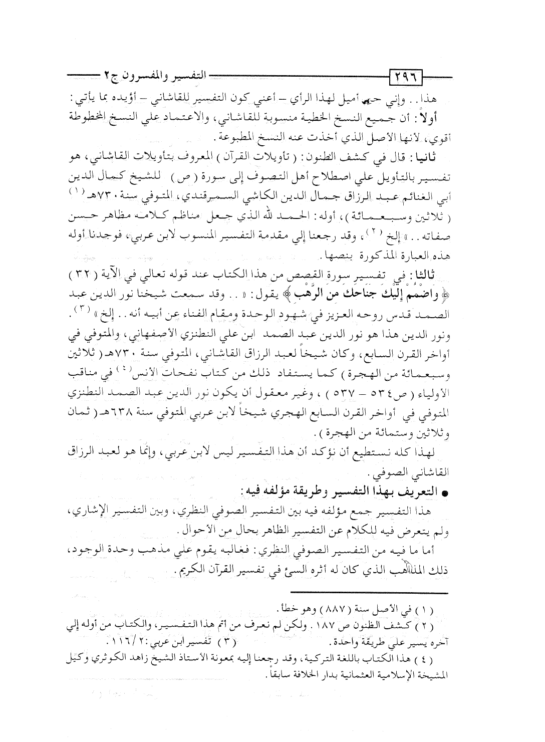لهذا كله نستطيع أن نؤكد أن هذا التفسير ليس لابن عربى، وإنما هو لعبد الرزاق القاشانى الصوفى.