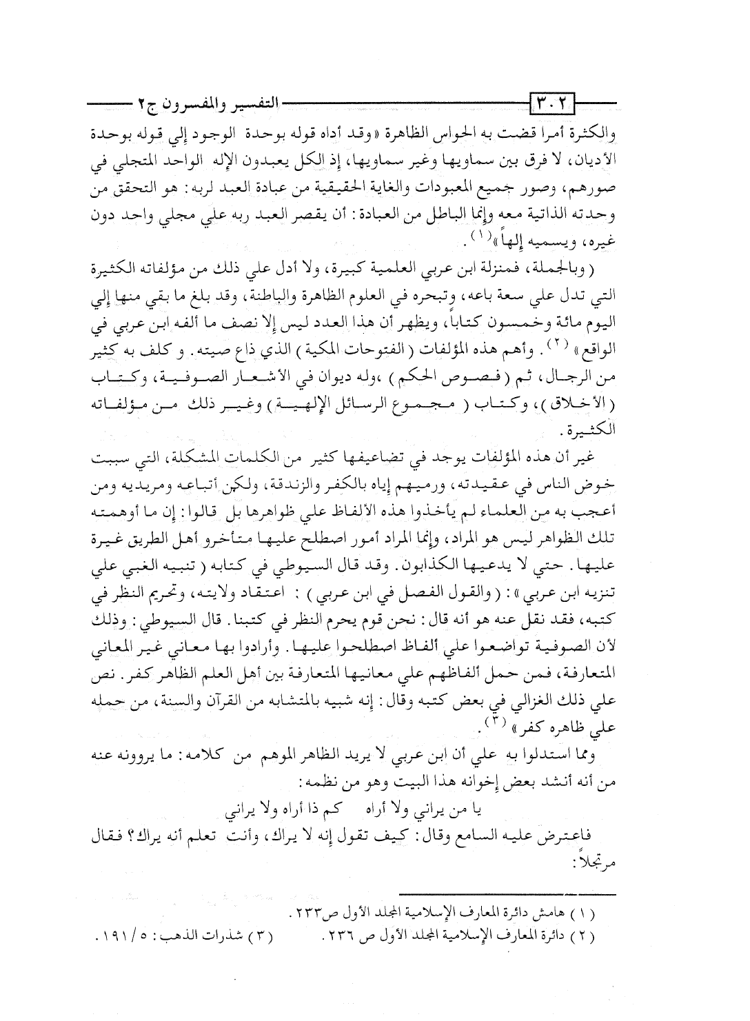 غير أن هذه المؤلفات يوجد فى تضاعيفها كثير من الكلمات المشكلة، التى سببت خوص الناس فى عقيدته، ورميهم إياه بالكفر والزندقة، ولكن أتباعه ومريديه ومَن أعجب به من العلماء لم يأخذوا هذه الألفاظ على ظواهرها بل قالوا: إن ما أوهمته تلك الظواهر ليس هو المراد، وإنما المراد أُمور اصطلح عليها متأخروا أهل الطريق غيرة عليها. حتى لا يدَّعيها الكذَّابون. وقد قال السيوطى فى كتابه "تنبيه الغبى على تنزيه ابن عربى": "والقول الفصل فى ابن عربى: اعتقاد ولايته، وتحريم النظر فى كتبه، فقد نُقِل عنه هو أنه قال: نحن قوم يحرم النظر فى كتبنا. قال السيوطى: وذلك لأن الصوفية تواضعوا على ألفاظ اصطلحوا عليها. وأرادوا بها معانى غير المعانى المتعارفة، فمَن حمل ألفاظهم على معانيها المتعارفة بين أهل العلم الظاهر كفر. نص على ذلك الغزالى فى بعض كتبه وقال: إنه شبيه بالمتشابه من القرآن والسُّنَّة، مَن حمله على ظاهره كفر".