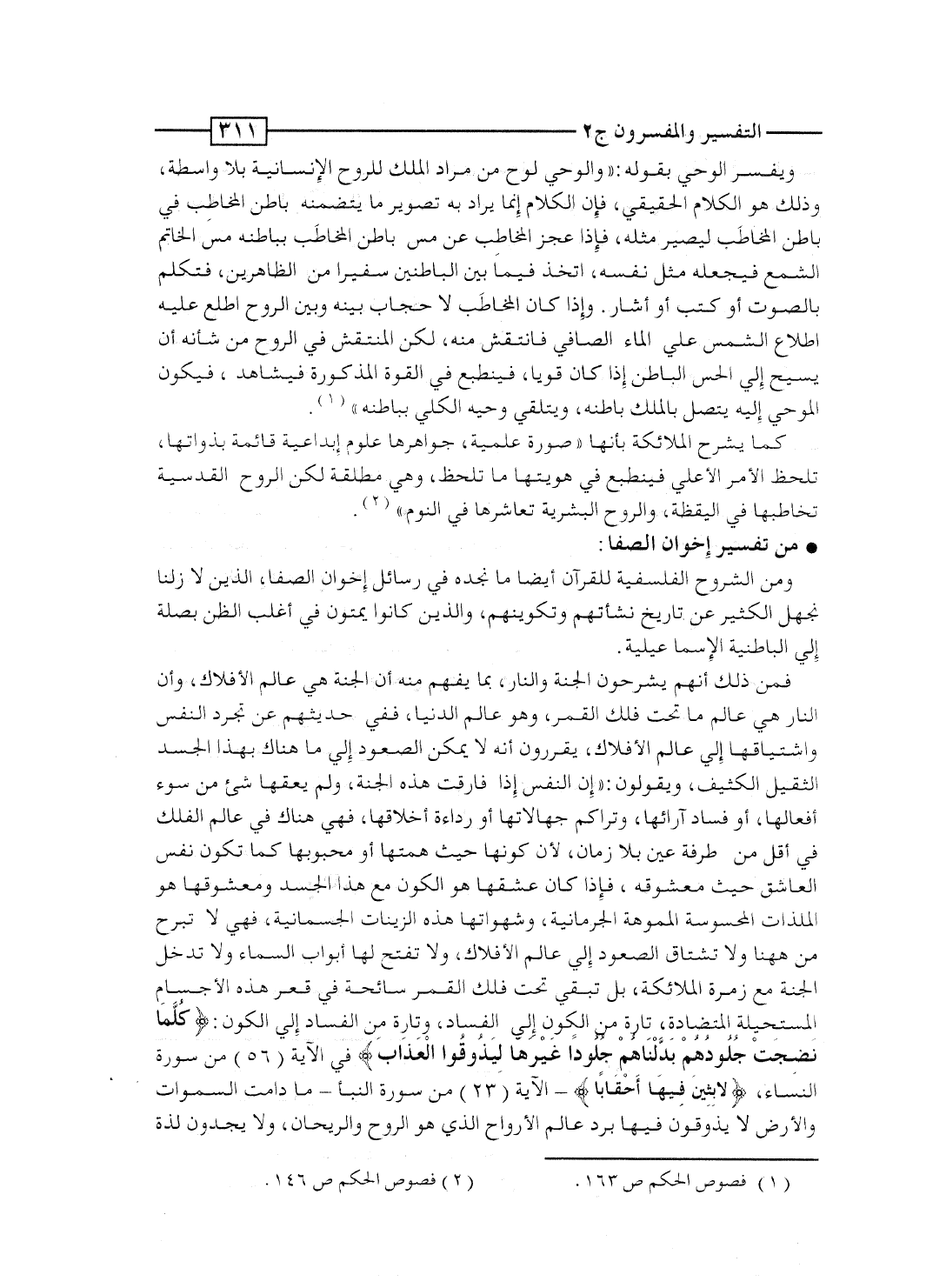 ومن الشروح الفلسفية للقرآن أيضاً ما نجده فى رسائل إخوان الصفا، الذين لا زلنا نجهل الكثير عن تاريخ نشأتهم وتكوينهم، والذين كانوا يمتون فى أغلب الظن بصلة إلى الباطنية الإسماعيلية.