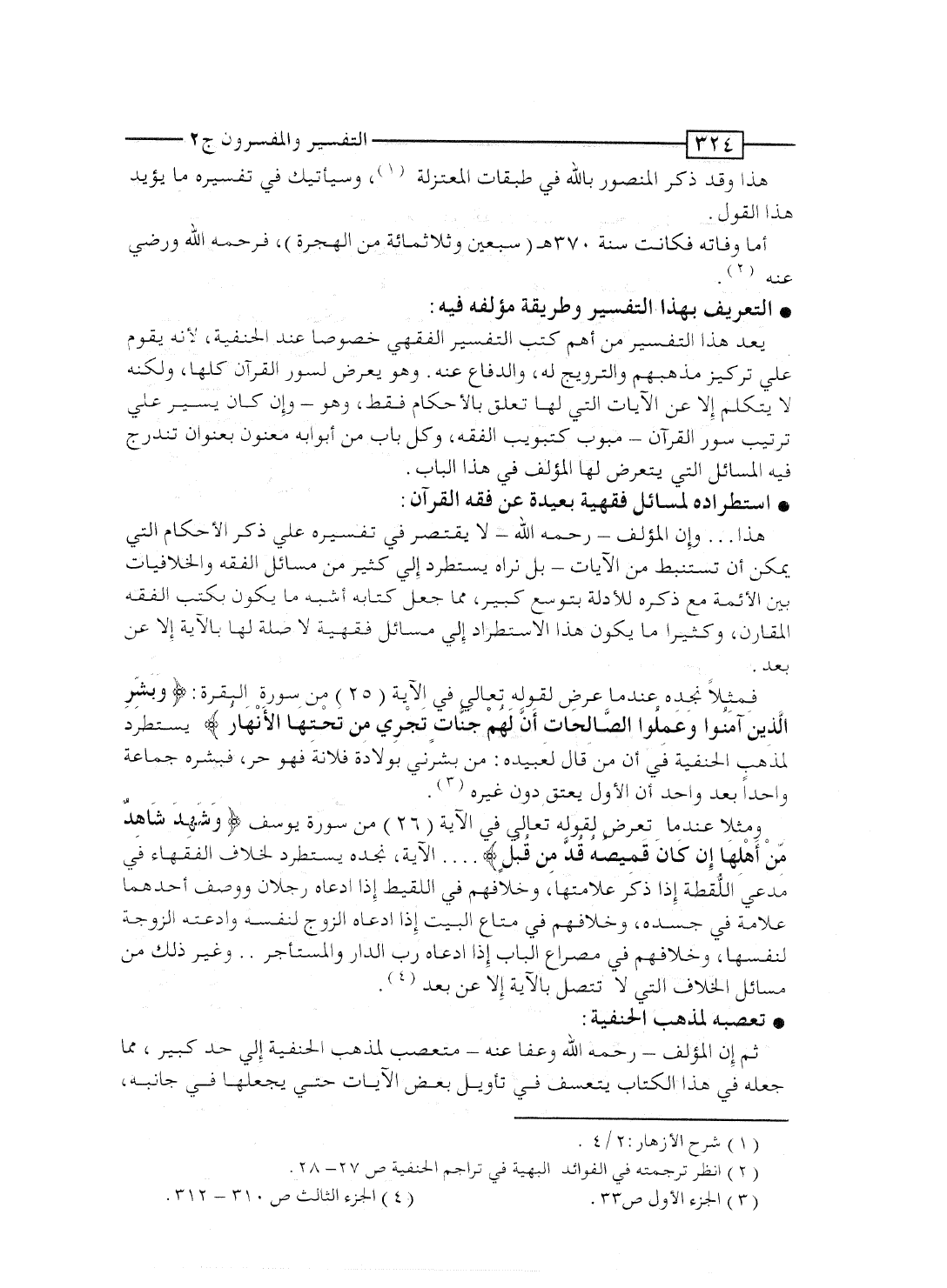 ثم إن المؤلف - رحمه الله وعفا عنه- متعصب لمذهب الحنفية إلى حد كبير، مما جعله فى هذا الكتاب يتعسف فى تأويل بعض الآيات حتى يجعلها فى جانبه،