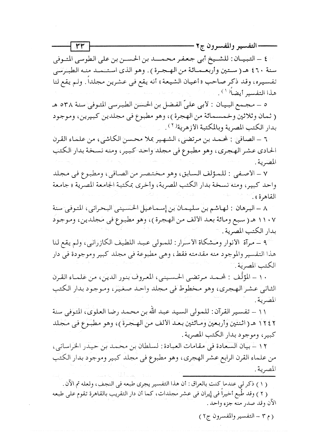 9 - مرآة الأنوار ومشكاة الأسرار: للمولى عبد اللطيف الكازرانى، ولم يقع لنا هذا التفسير والموجود منه مقدمته فقط، وهى مطبوعة فى مجلد كبير وموجودة فى دار الكتب المصرية.