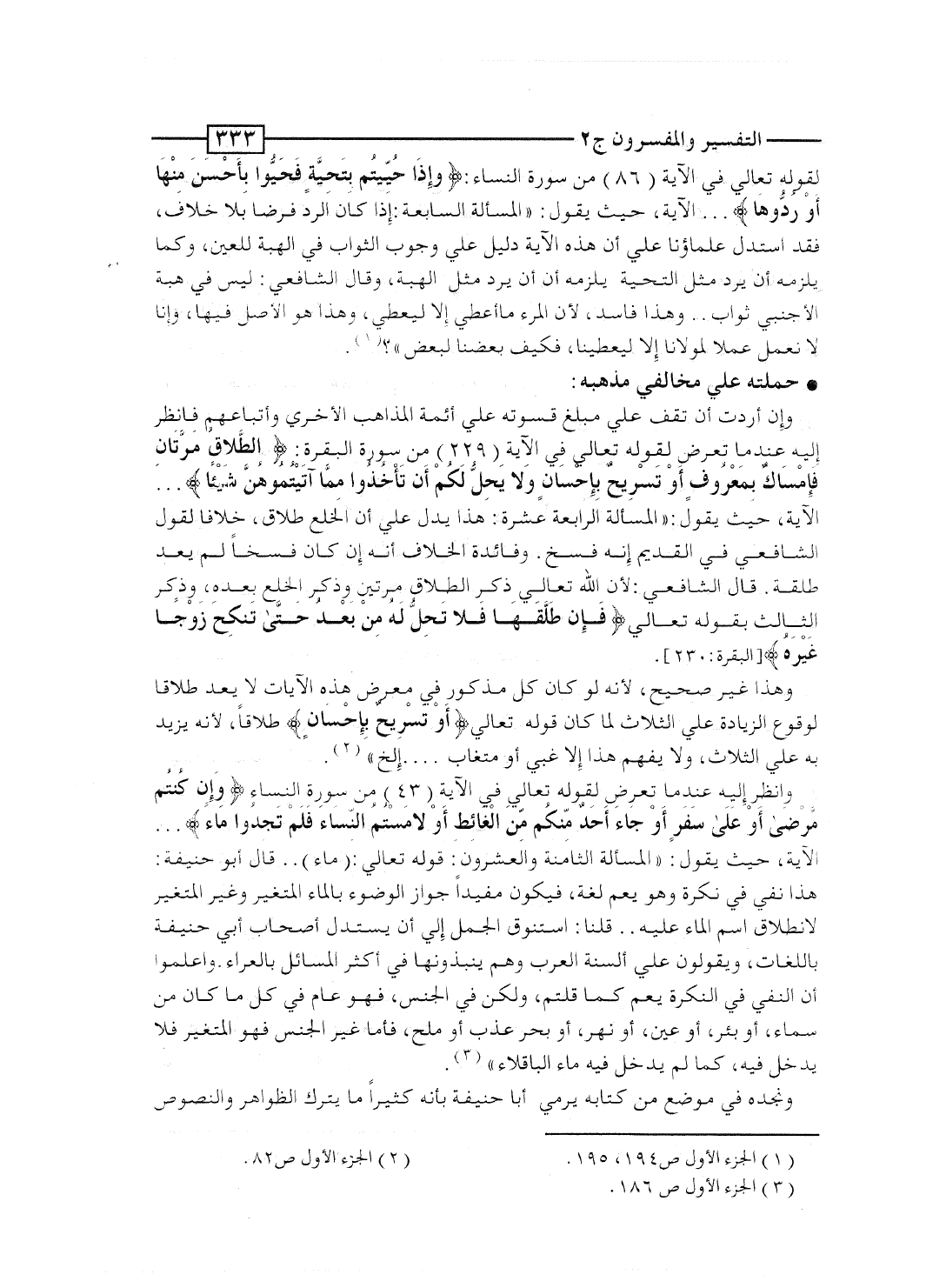 وهذا غير صحيح، لأنه لو كان كل مذكور فى معرض هذه الآيات لا يُعَد طلاقاً لوقوع الزيادة على الثلاث لما كان قوله تعالى {أَوْ تَسْرِيحٌ بِإحْسَانٍ} طلاقاً، لأنه يزيد به على الثلاث، ولا يفهم هذا إلا غبى أو متغاب ... . إلخ".