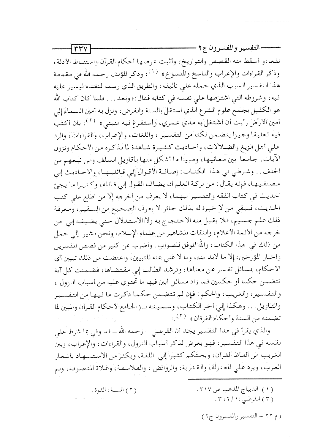 نفعاً، أسقط منه القصص والتواريخ، وأثبت عوضها أحكام القرآن واستنباط الأدلة، وذكر القراءات والإعراب والناسخ والمنسوخ"، وذكر المؤلف رحمه الله فى مقدمة هذا التفسير السبب الذى حمله على تأليفه، والطريق الذى رسمه لنفسه ليسير عليه فيه، وشروطه التى اشترطها على نفسه فى كتابه فقال: "وبعد.. فلما كان كتاب الله هو الكفيل بجمع علوم الشرع الذى استقل بالسُّنَّة والفرض، ونزل به أمين السماء إلى أمين الأرض، رأيت أن أشتغل به مدى عمرى، وأستفرغ فه منتى، بأن أكتب فيه تعليقاً وجيزاً يتضمن نكتاً من التفسير، واللُّغات، والإِعراب، والقراءات، والرد على أهل الزيغ والضلالات، وأحاديث كثيرة شاهدة لما نذكره من الأحكام ونزول الآيات، جامعاً بين معانيها، ومبيناً ما أشكل منها بأقاويل السَلَف ومَن تبعهم من الخَلَف.. وشرطى فى هذا الكتاب: إضافة الأقوال إلى قائليها، والأحاديث إلى مصنفيها، فإنه يقال: من بركة العلم أن يُضاف الأقوال إلى قائليها، والأحاديث إلى مصنفيها، فإنه يقال: من بركة العلم أن يُضاف القول إلى قائله، وكثيراً ما يجئ الحديث فى كتاب الفقه والتفسير مبهماً، لا يعرف من أخرجه إلا مَن اطلع على كتب الحديث، فيبقى مَن لا خبرة له بذلك حائراً لا يعرف الصحيح من السقيم، ومعرفة ذلك علم جسيم. فلا يُقبل منه الاحتجاج به ولا الاستدلال حتى يضيفه إلى مَن خرَّجه من الأئمة الأعلام، والثقات المشاهير من علماء الإسلام، ونحن نشير إلى جُمَل من ذلك فى هذا الكتاب، والله الموفق للصواب. وأضرب عن كثير من قصص المفسِّرين، وأخبار المؤرخين، إلا ما لا بد منه، وما لا غنى عنه للتبيين، واعتضت من ذلك تبيين آي الأحكام، بمسائل تُفسِّر عن معناها، وتُرشد الطالب إلى مقتضاها، فضمنت كل آية تتضمن حكماً أو حكمين فما زاد مسائل أُبيِّن فيها ما تحتوى عليه من أسباب النزول، والتفسير، والغريب، والحكم. فإن لم تتضمن حكماً ذكرتُ ما فيها من التفسير والتأويل ... وهكذا إلى آخر الكتاب، وسميته بـ "الجامع لأحكام القرآن والمبين لما تضمنه من السُّنَّة وأحكام الفرقان ... ".