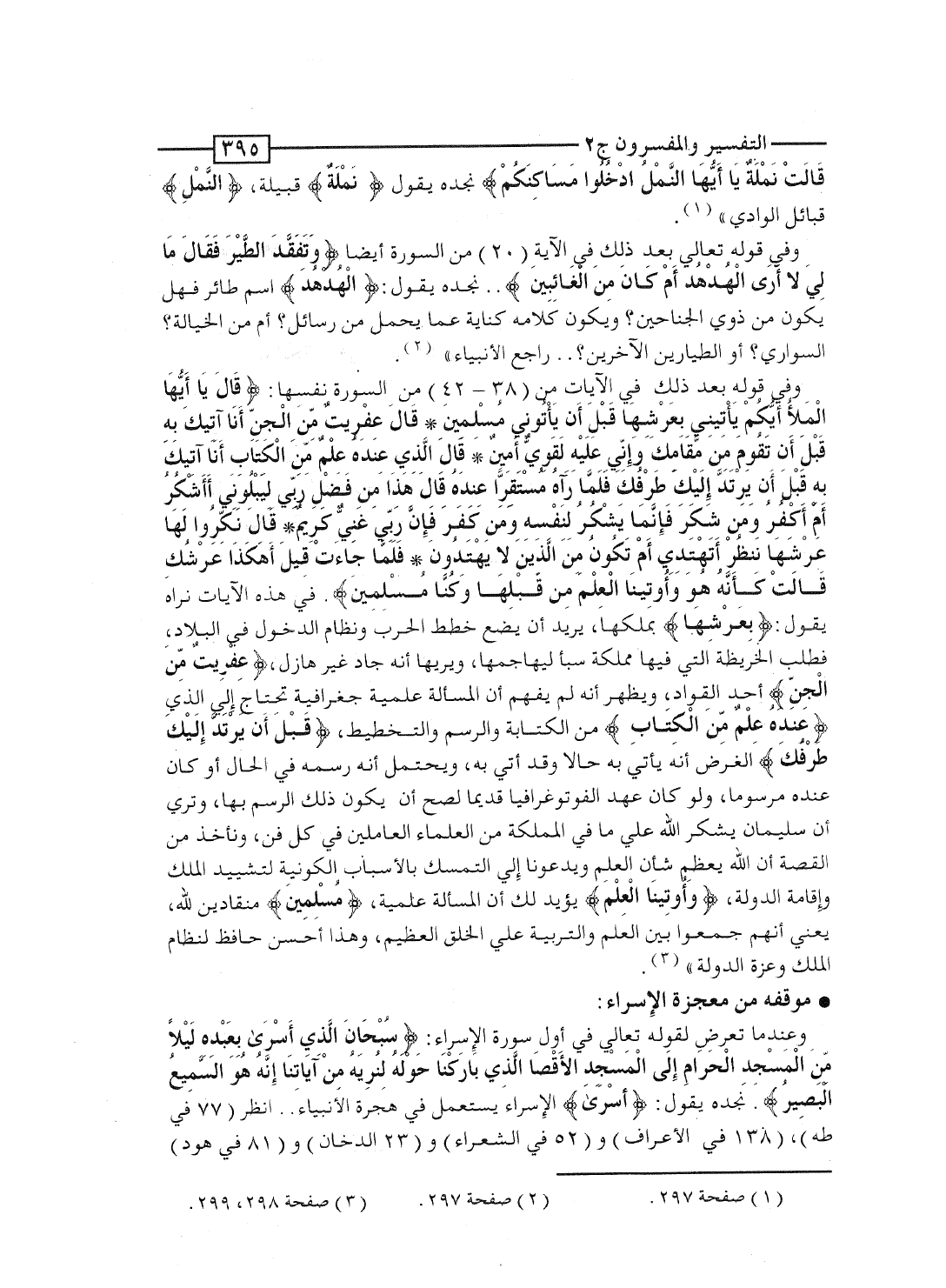 وفى قوله بعد ذلك فى الآية [20] من السورة أيضاً: {وَتَفَقَّدَ الطير فَقَالَ مَالِيَ لاَ أَرَى الهدهد أَمْ كَانَ مِنَ الغآئبين} .. نجده يقول: {الهدهد} اسم طائر فهل يكون من ذوى الجناحين؟ ويكون كلامه كناية عما يحمل من رسائل؟ أم من الخيّالة؟ السوارى؟ أو الطيَّارين الآخرين؟.. راجع الأنبياء".