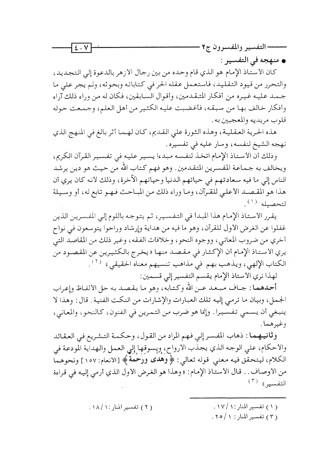 لهذا نرى الأستاذ الإمام يقسم التفسير إلى قسمين: