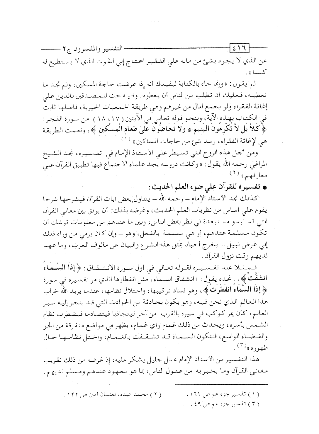 ومن أجل هذه الروح التى تسيطر على الأستاذ الإمام فى تفسيره، نجد الشيخ المراغى رحمه الله يقول: "وكانت دروسه يجد علماء الاجتماع فيها تطبيق القرآن على معارفهم".
