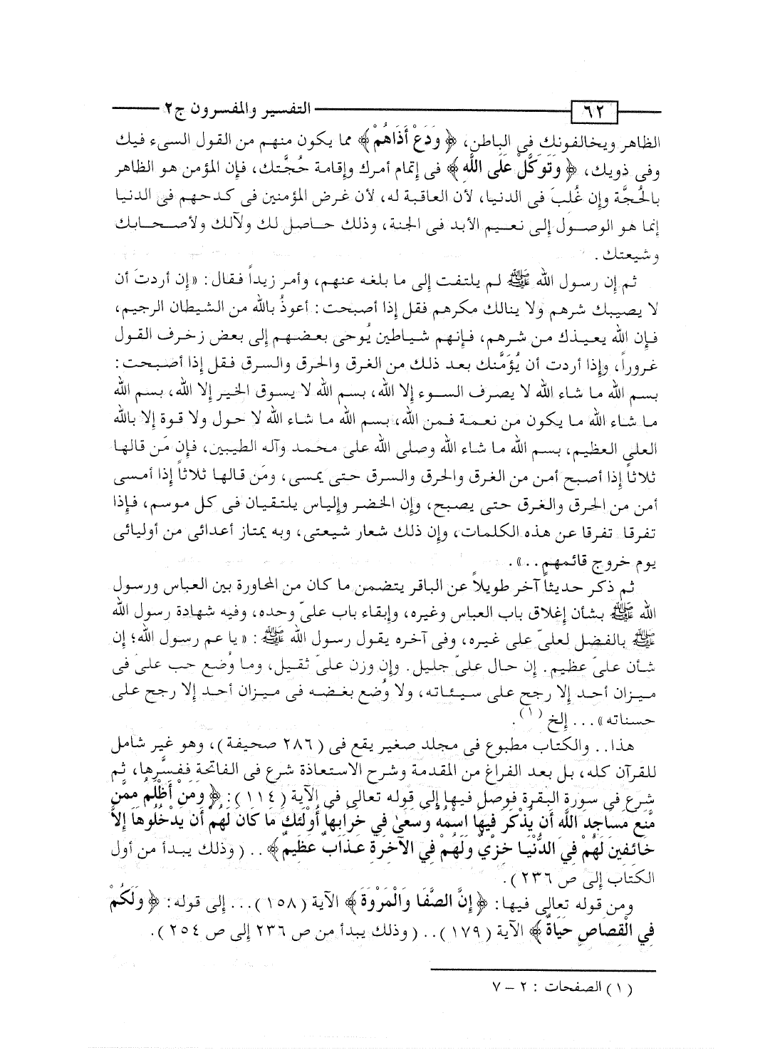 ومن قوله تعالى فيها: {إِنَّ الصفا والمروة} الآية [158] ... إلى قوله: {وَلَكُمْ فِي القصاص حَيَاةٌ} الآية [179] .. (وذلك يبدأ من ص 236 إلى ص 254) .
