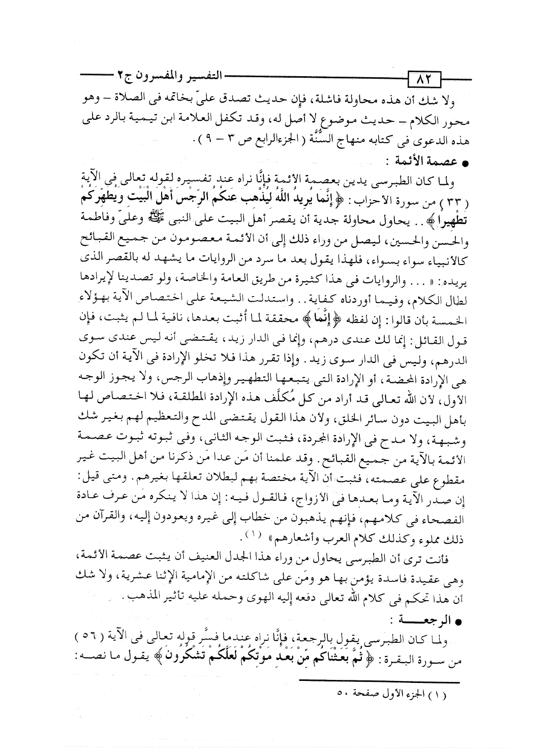 فأنت ترى أن الطبرسى يحاول من وراء هذا الجدل العنيف أن يثبت عصمة الأئمة، وهى عقيدة فاسدة يؤمن بها هو ومَن على شاكلته من الإمامية الإثنا عشرية، ولا شك أن هذا تحكم فى كلام الله تعالى دفعه إليه الهوى وحمله عليه تأثير المذهب.