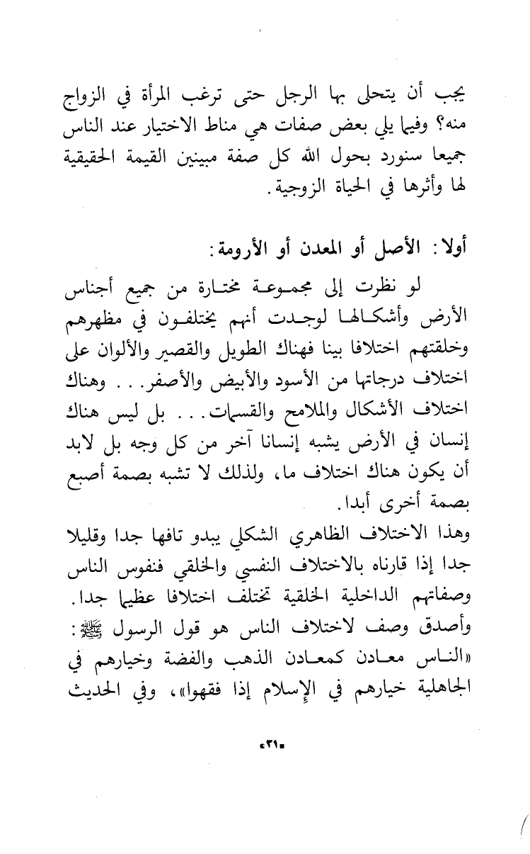 وهذا الاختلاف الظاهري الشكلي يبدو تافهاً جداً وقليلاً جداً إذا قارناه بالاختلاف النفسي والخلقي فنفوس الناس وصفاتهم الداخلية الخلقية تختلف اختلافاً عظيماً جداً. وأصدق وصف لاختلاف الناس هو قول الرسول صلى الله عليه وسلم: [الناس معادن كمعادن الذهب والفضة وخيارهم في الجاهلية خيارهم في الإسلام إذا فقهوا] ، وفي الحديث