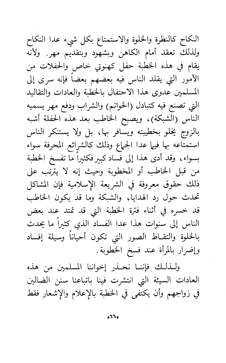 ولذلك فإننا نحذر إخواننا المسلمين من هذه العادات السيئة التي انتشرت فينا باتباعنا سنن الضالين في زواجهم وأن يكتفي في الخطبة بالإعلام والإشعار فقط